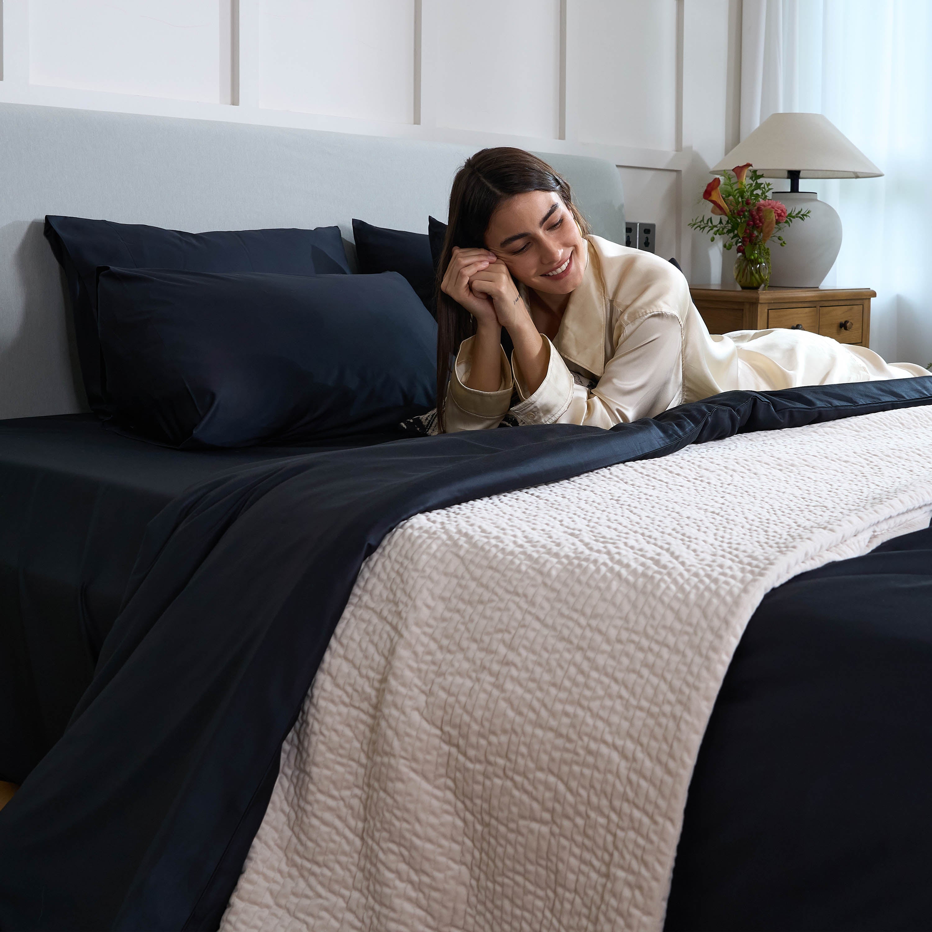 竹ビスコース製のベッドシーツ 1 枚、ボックスシーツ 1 枚、枕カバー 2 枚が含まれます。