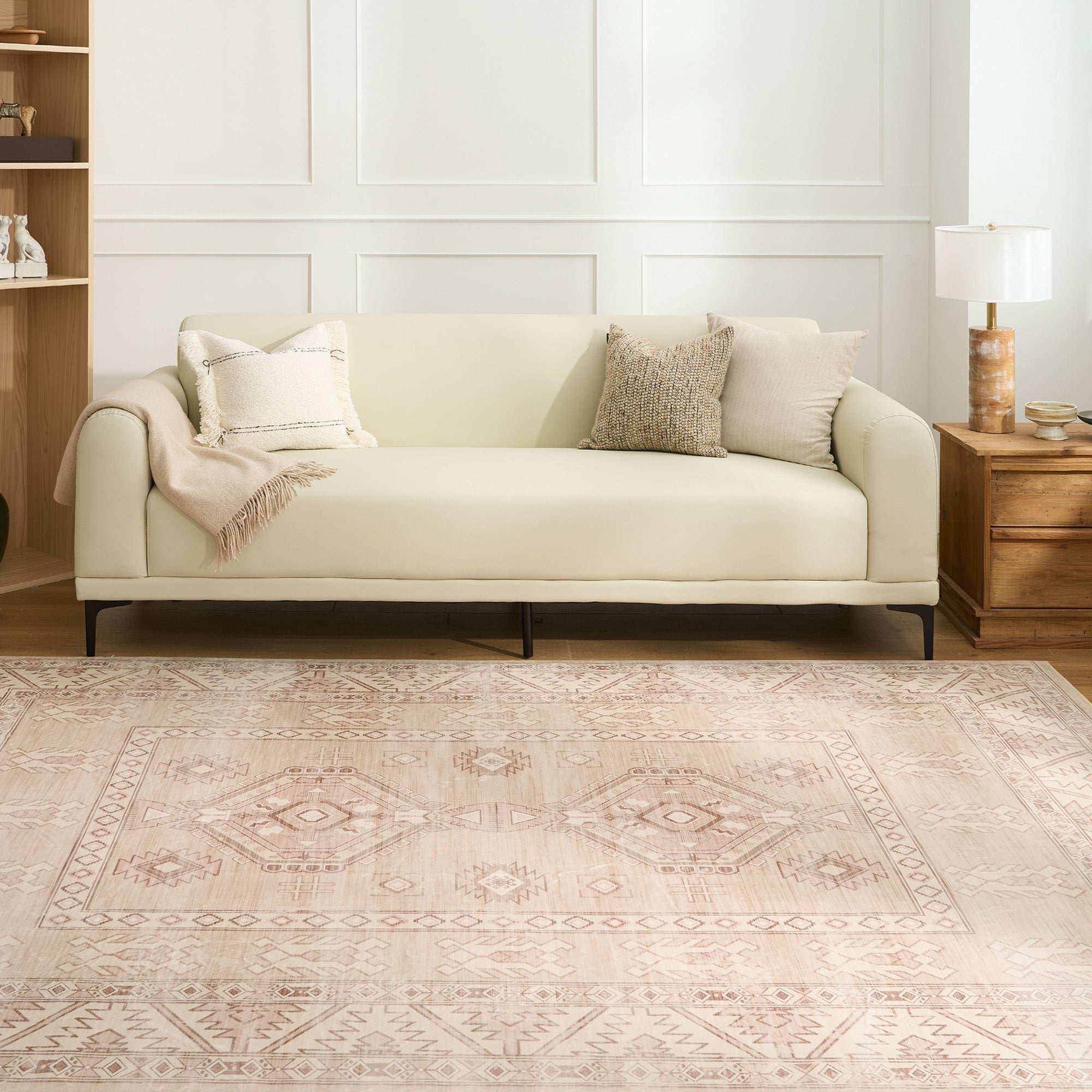 お手入れ簡単、洗えるラグ、ボヘミアン風、幾何学模様、素朴な砂漠デザイン、耐久性、こぼれ防止、ペットにも優しい、滑り止めパッド付き、リビングルームエリアラグ
