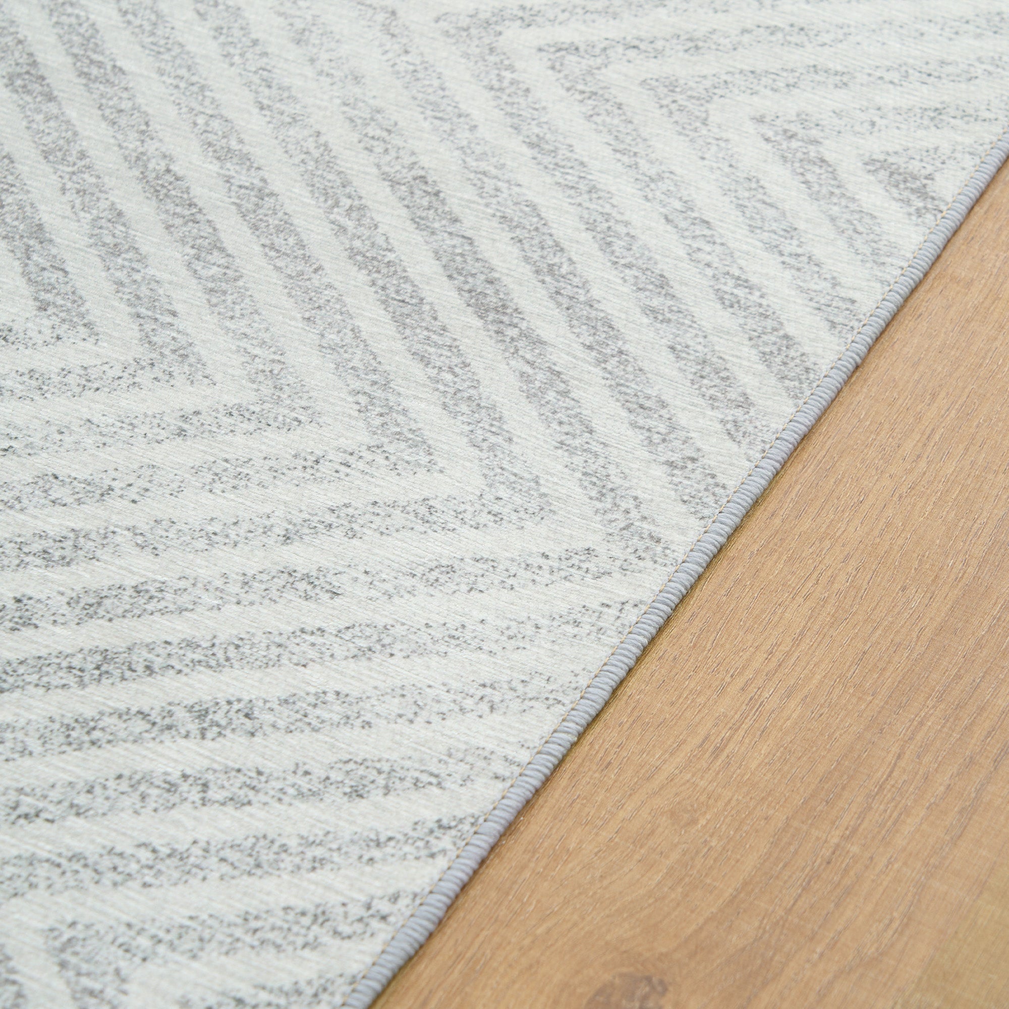 お手入れ簡単、洗えるラグ、ミニマリスト、モノクロ、シェブロンデザイン、耐久性、こぼれ防止、ペットにも優しい、滑り止めパッド付き、リビングルームエリアラグ