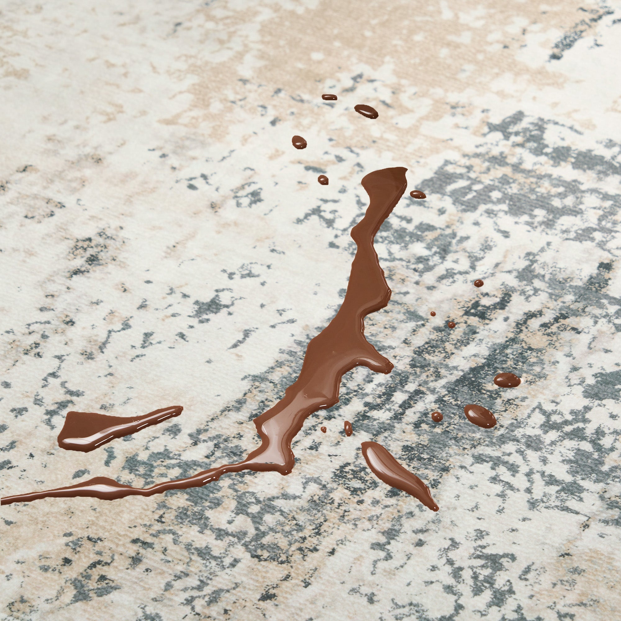 お手入れ簡単、洗えるラグ。柔らかくエレガント。抽象的なアースカラーデザイン。耐久性があり、こぼれにくく、ペットにも優しい。滑り止めパッド付き。リビングルームエリアラグ。
