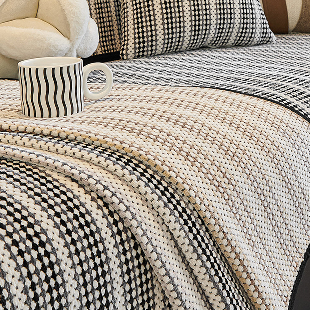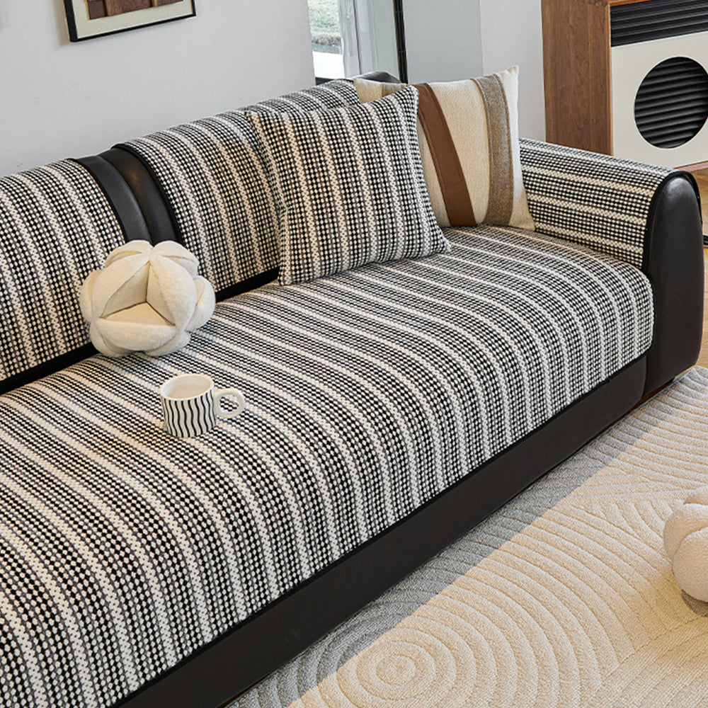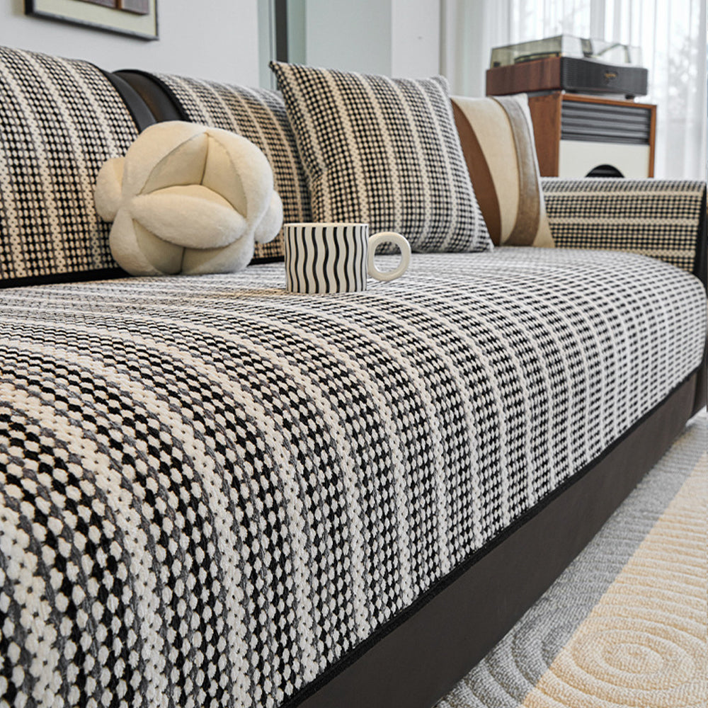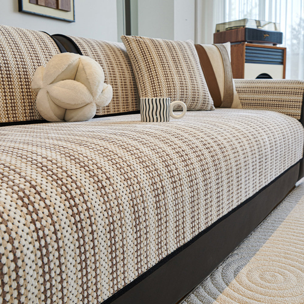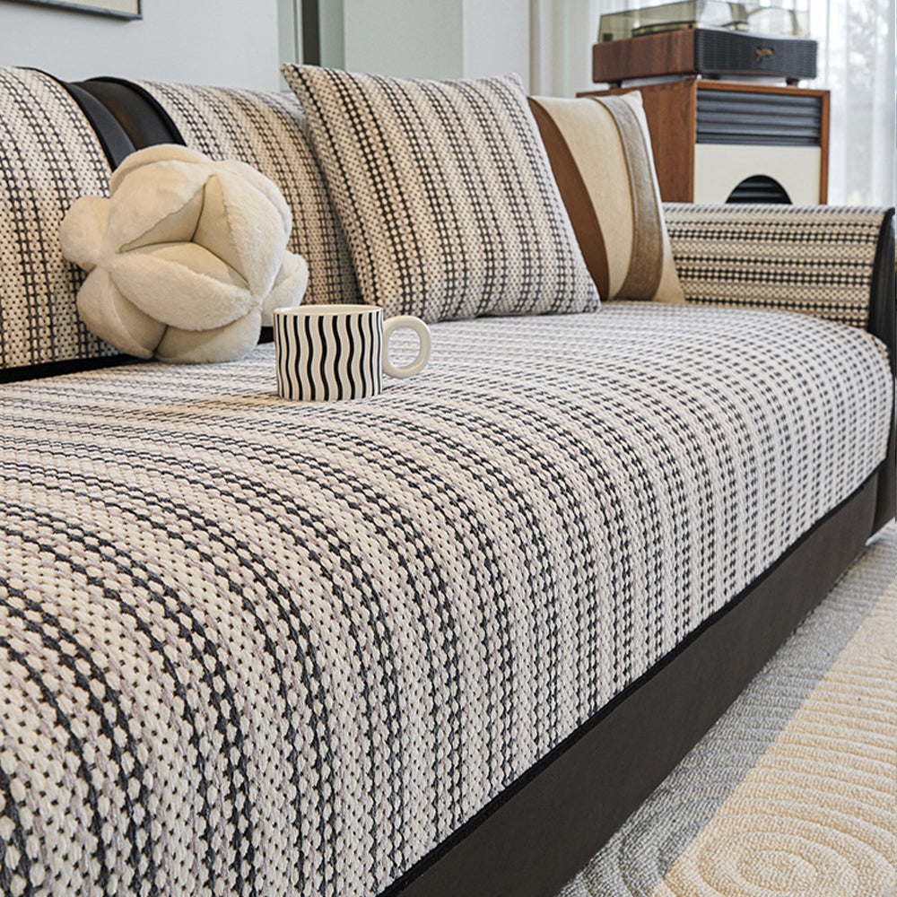 ツイル織りのシェニール素材で滑り止め加工を施したソファカバーで、毎日のくつろぎをグレードアップ。高密度のシェニールニットは、ふっくらとした柔らかさとオールシーズン対応の耐久性を兼ね備え、質感のあるツイルストライプが、どんなお部屋にもマッチする、すっきりとしたモダンな雰囲気を演出します。滑り止め加工を施した裏地は、座ったり、お昼寝したり、遊んだりしてもカバーがずれにくく、お子様やペットのいるご家庭に最適です。