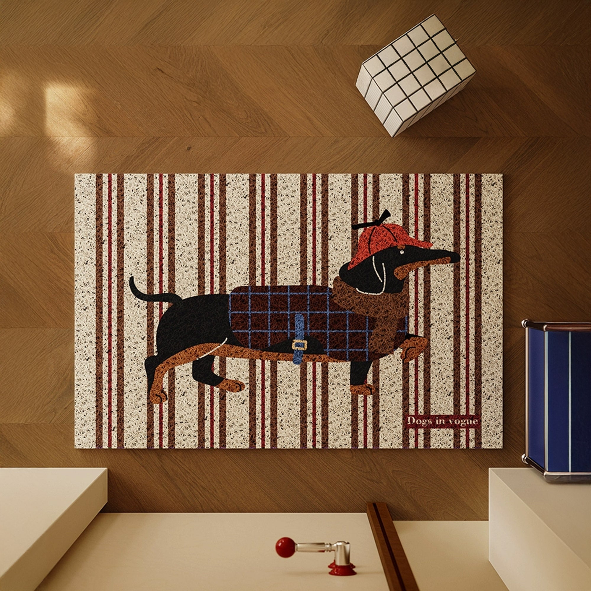 •探偵に扮した粋なダックスフントが描かれ、チェック柄のコートと探偵帽を身に着けたこのマットは、どんな出入り口にもスタイリッシュさとユーモアをもたらします。