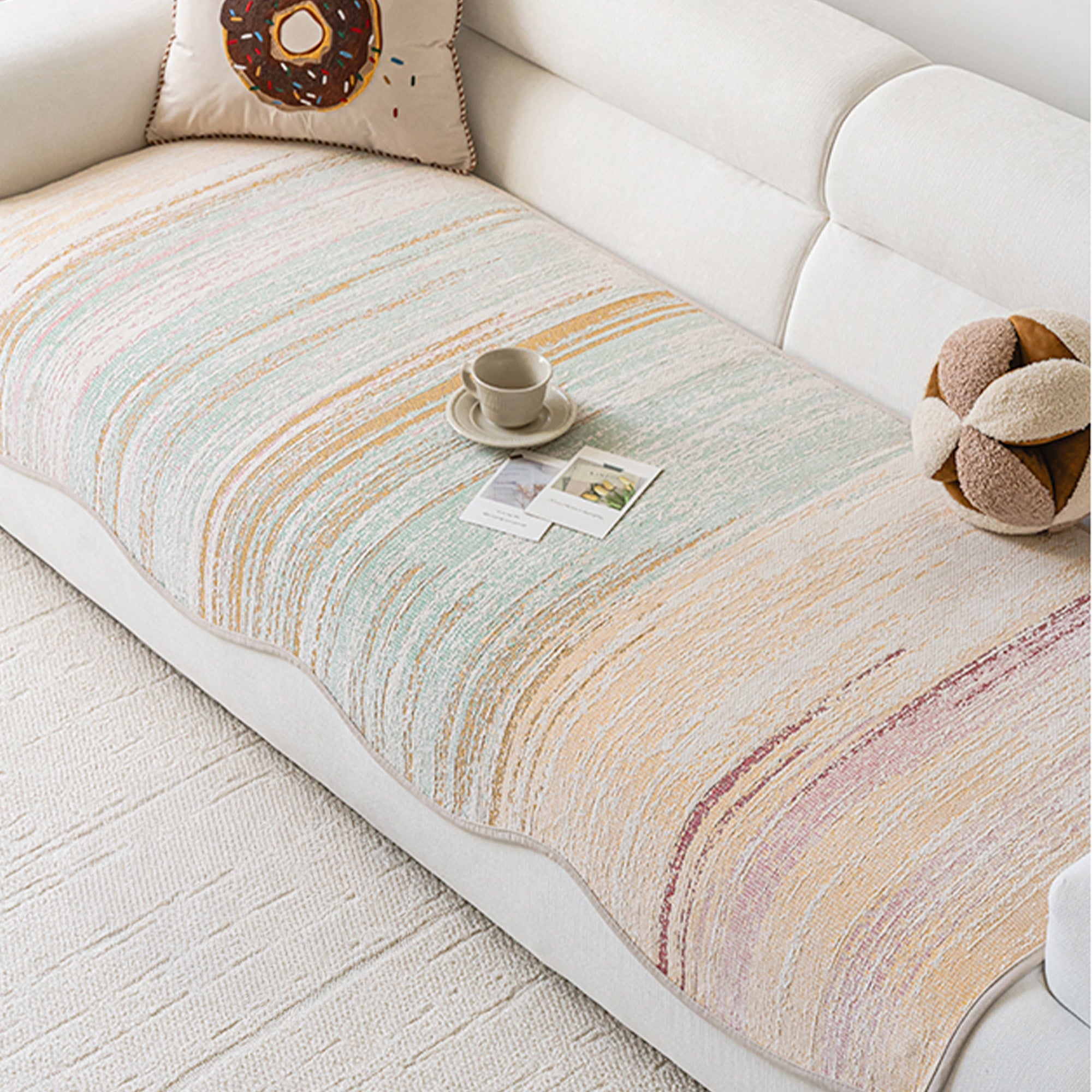 アブストラクトブリーズ 傷に強いシェニール素材のソファカバーで、時代を超えた芸術的な雰囲気と心地よい快適さをご自宅にプラスしましょう。柔らかでモダンな色合いの流れるような抽象模様がデザインされたこのカバーは、リビングスペースにエレガントさと創造性をもたらします。耐久性がありペットにも優しいシェニール生地で作られており、インテリアを引き立てるだけでなく、日常の摩耗、傷、ペットの毛などから長くお使いいただけます。