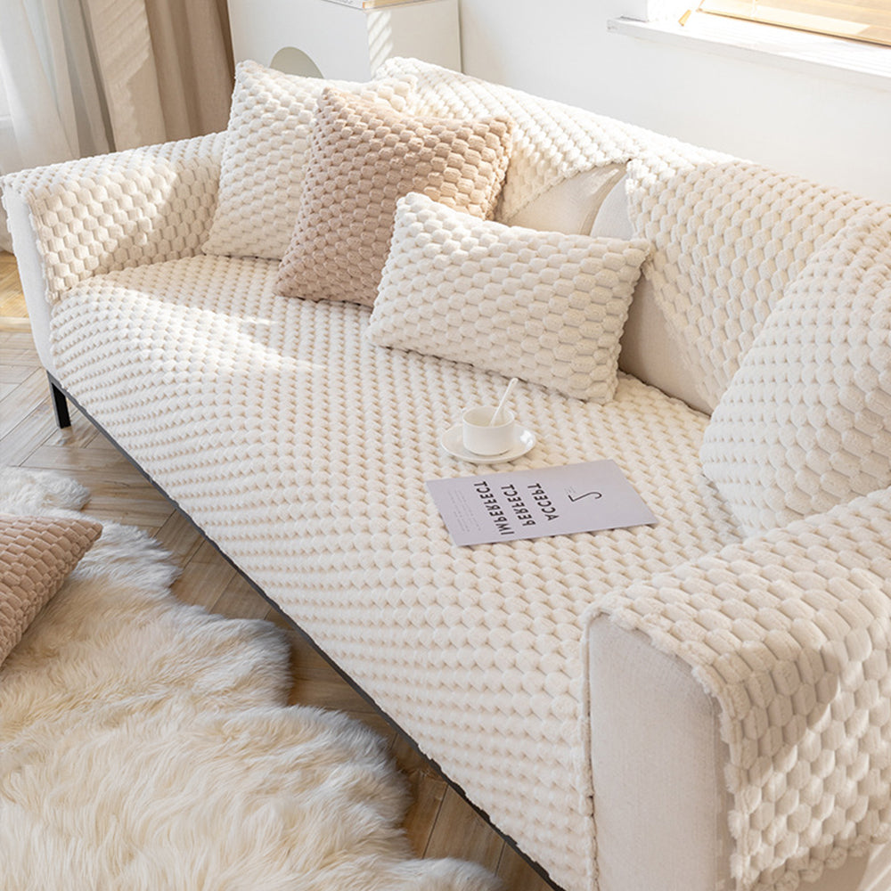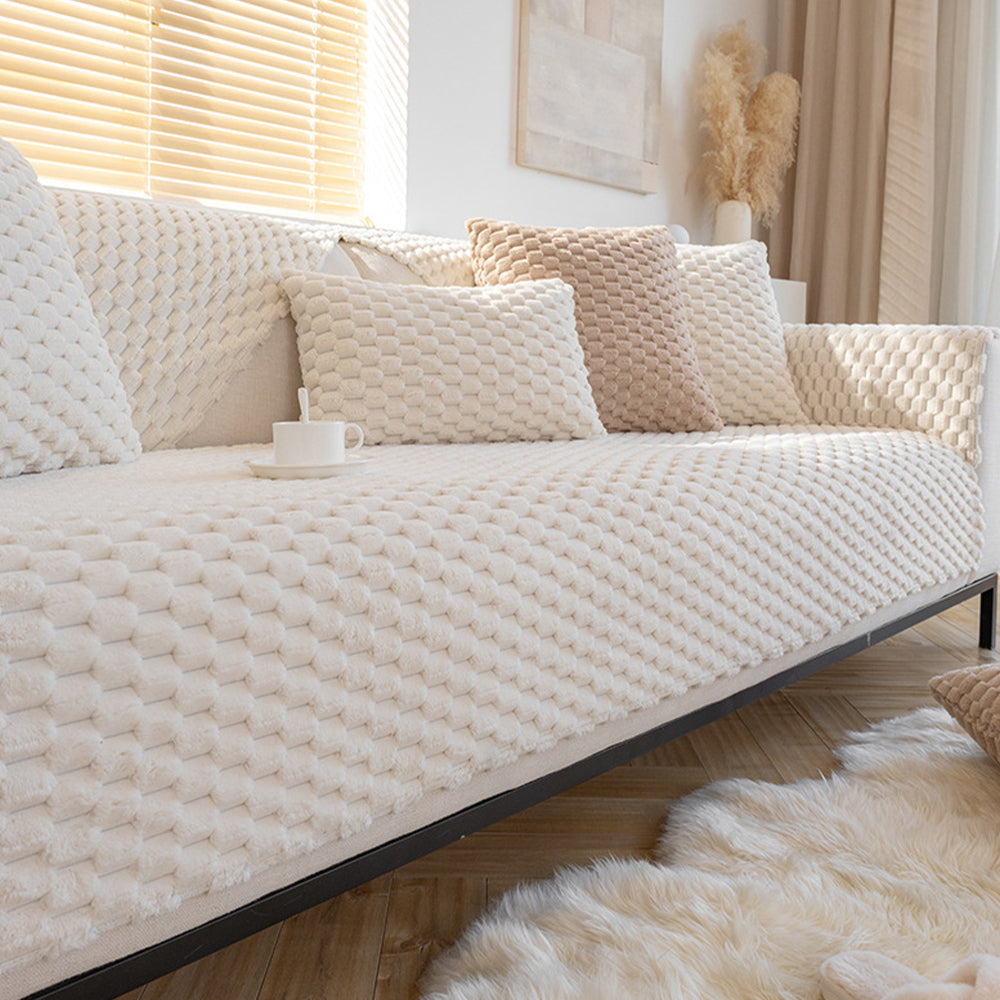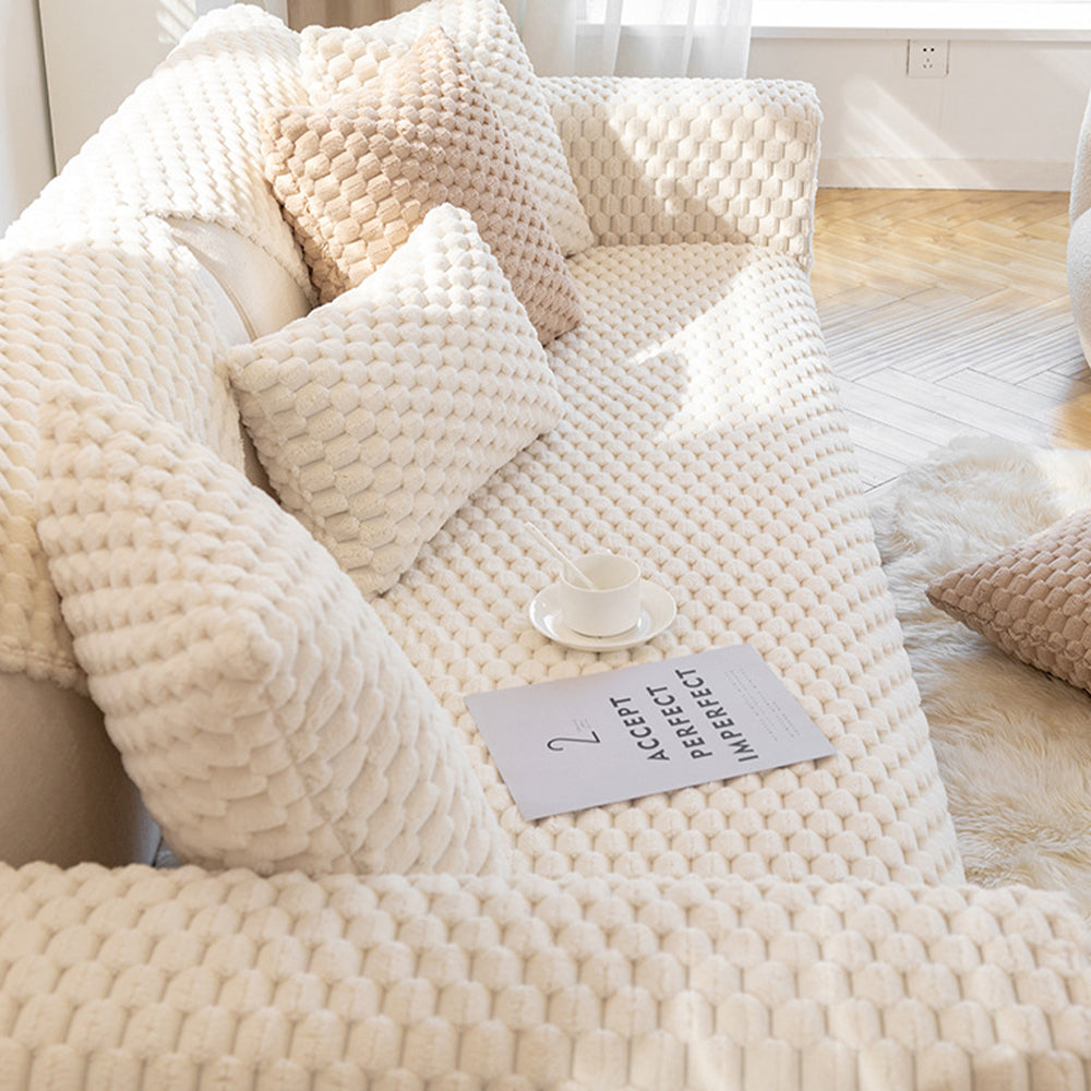 クラウド ペブル プラッシュ ノンスリップ ソファカバーで、リビングスペースに心地よい温かさとモダンな質感をプラス。柔らかく起毛したペブルニットの表面が特徴のこの冬仕様のソファカバーは、心地よいふわふわ感と、モダン、ミニマリスト、スカンジナビア風のインテリアによく合う、すっきりとした現代的なデザインを兼ね備えています。