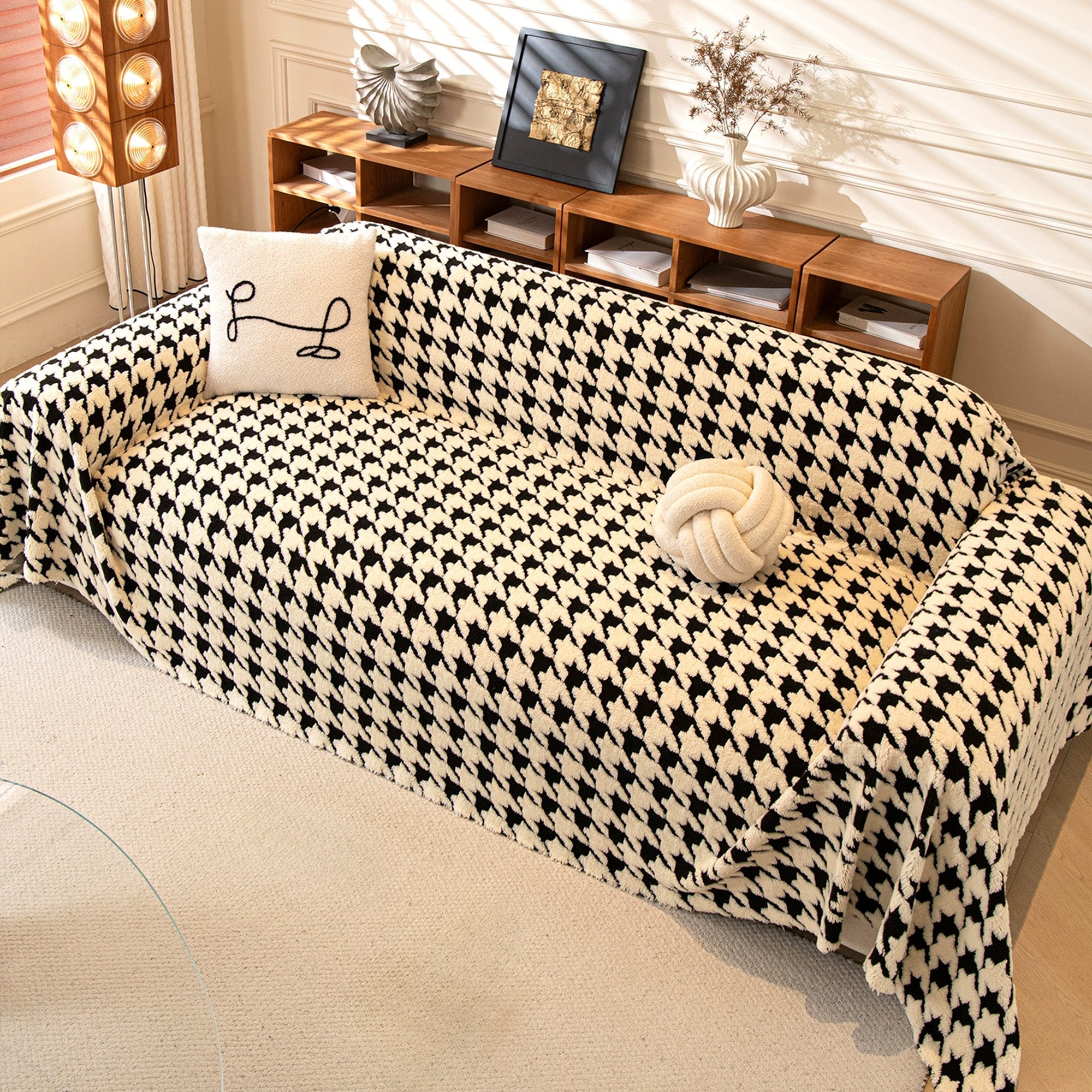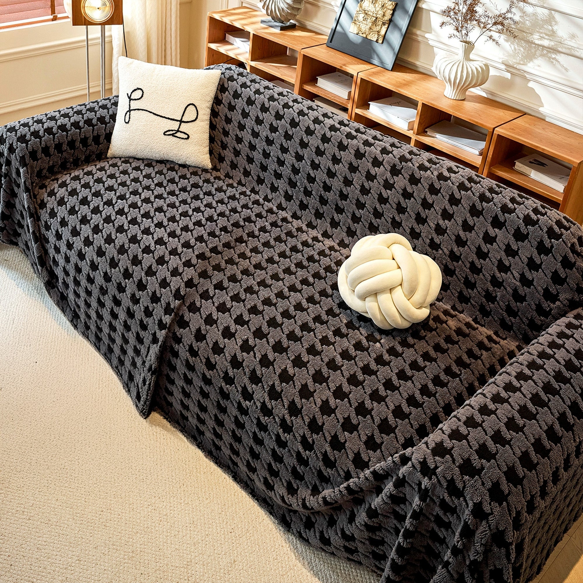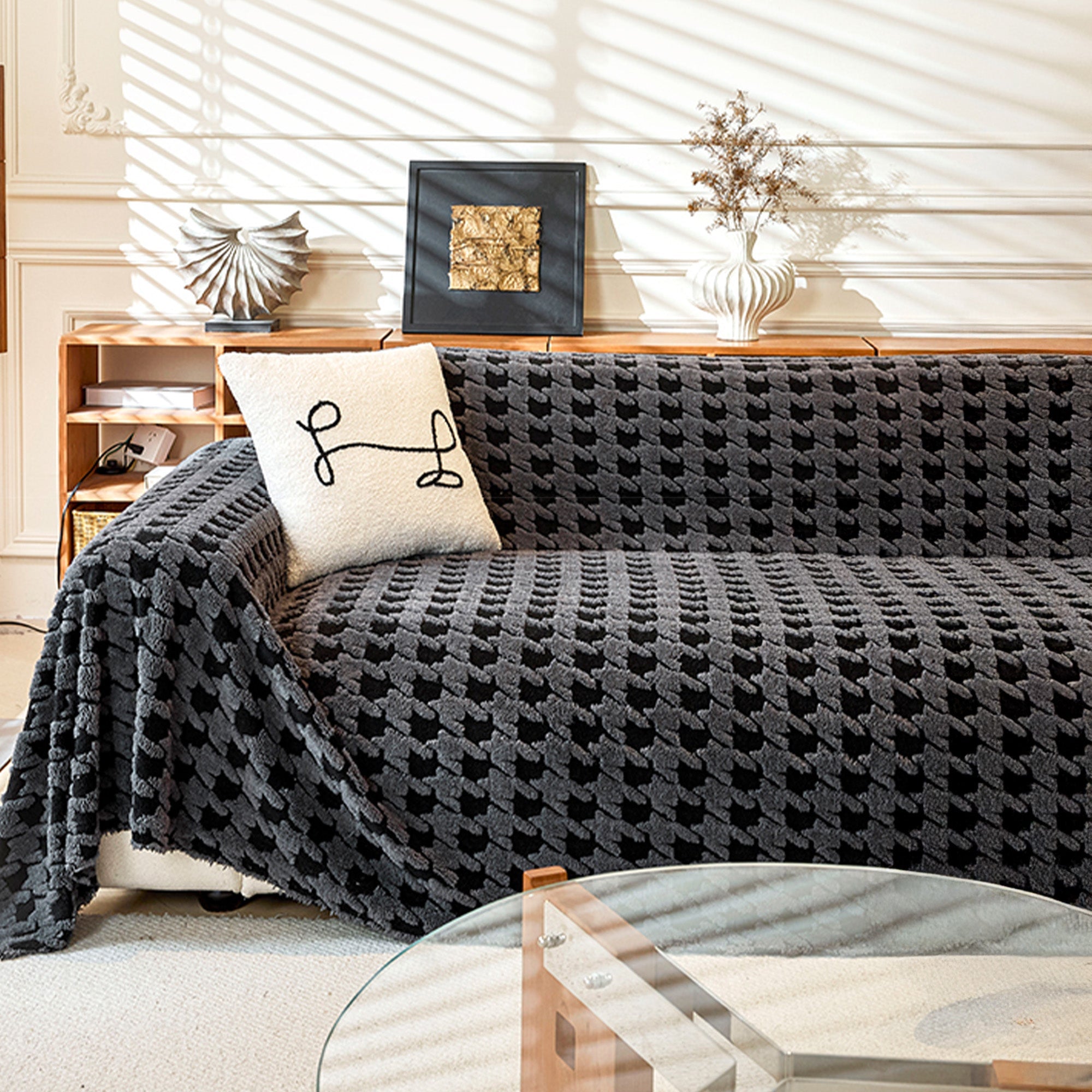 コージーハウンドトゥース プラッシュソファカバーで、時代を超えたスタイルと雲のように柔らかな心地よさでソファを包み込みましょう。プラッシュハウンドトゥースパイルが豊かな質感を演出し、ペットにも優しい高密度繊維が、日々の摩耗、毛羽立ち、傷からソファを守ります。しっかりとした滑り止め加工の裏地と伸縮性のあるドレープが、座ったり、くつろいだり、遊んだりするたびに、カバーを平らでしっかりと固定します。