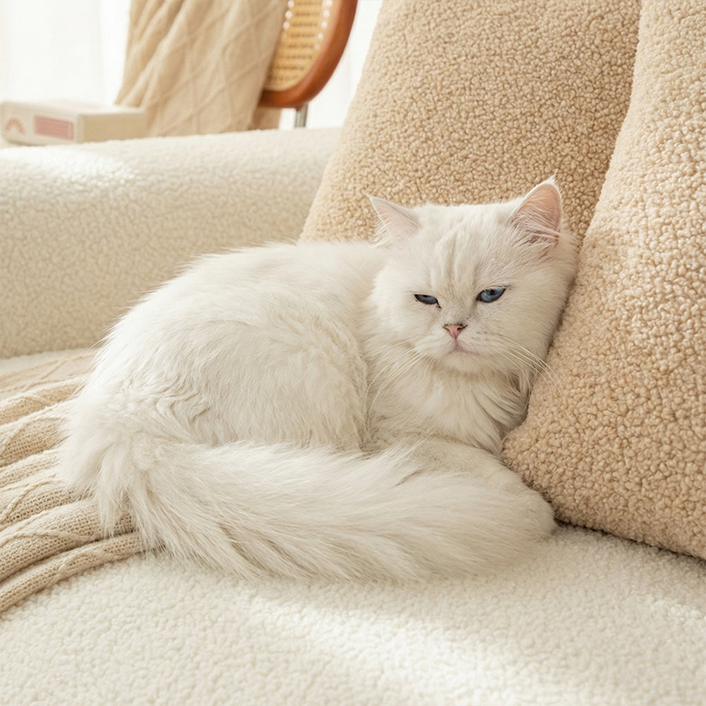 高密度のジャカード織りが爪痕を防ぎ、毛を絡めとるので、最小限の手間でソファを清潔に保ちます。