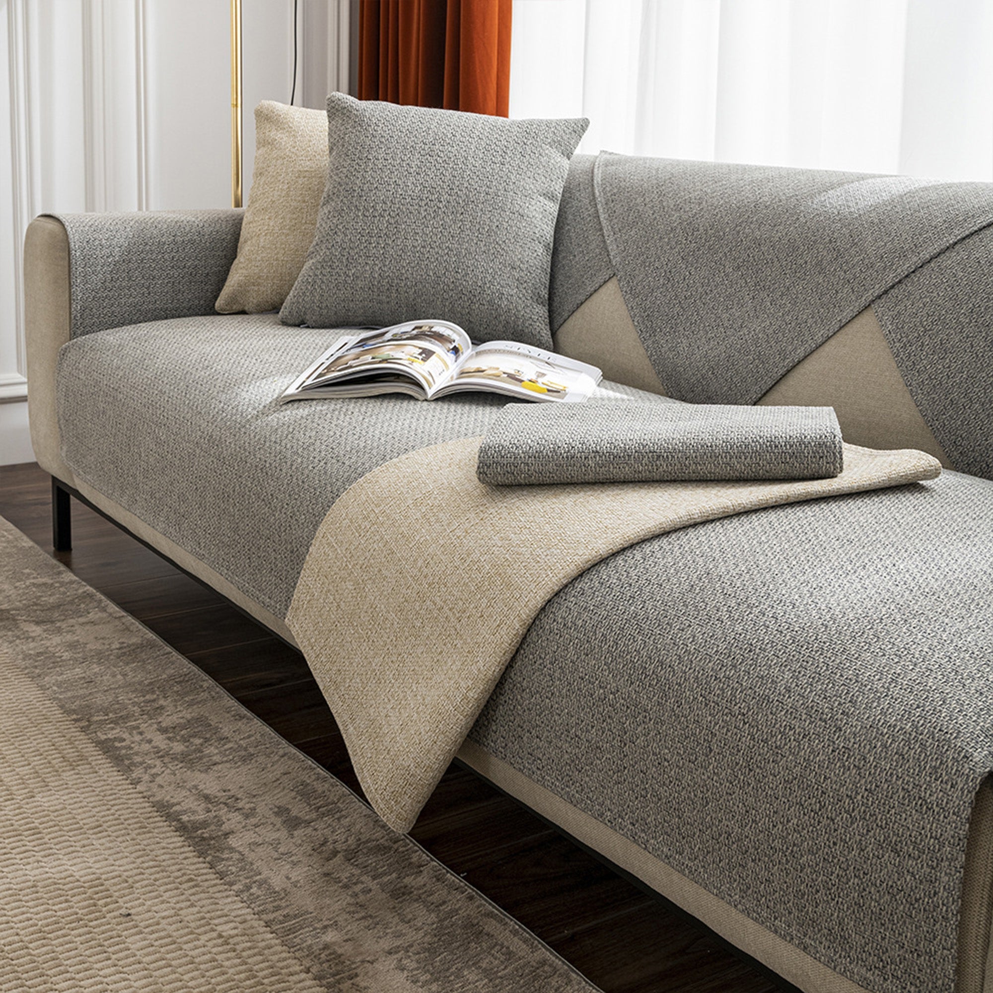 エレガントな織りのフェイクリネン滑り止めソファカバー