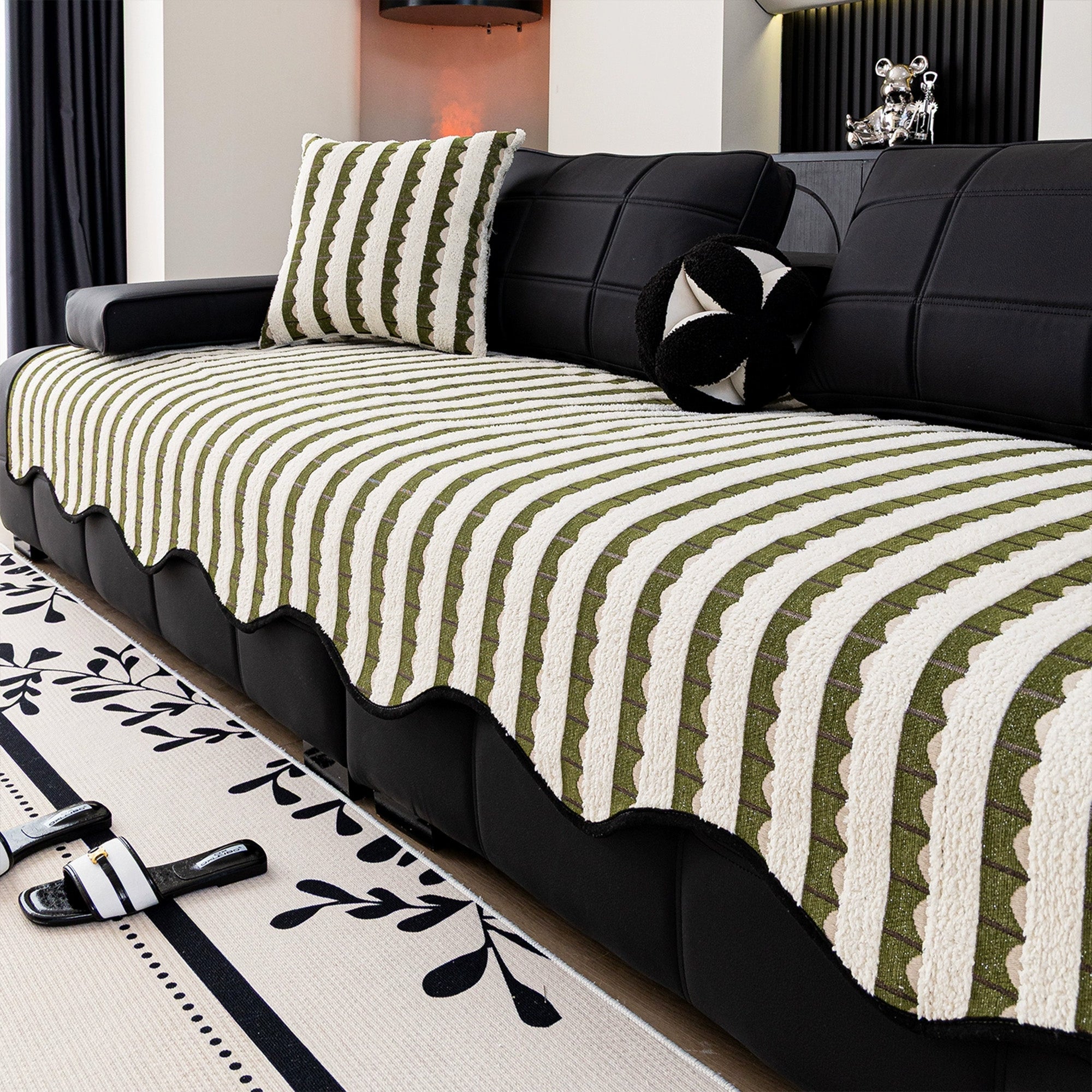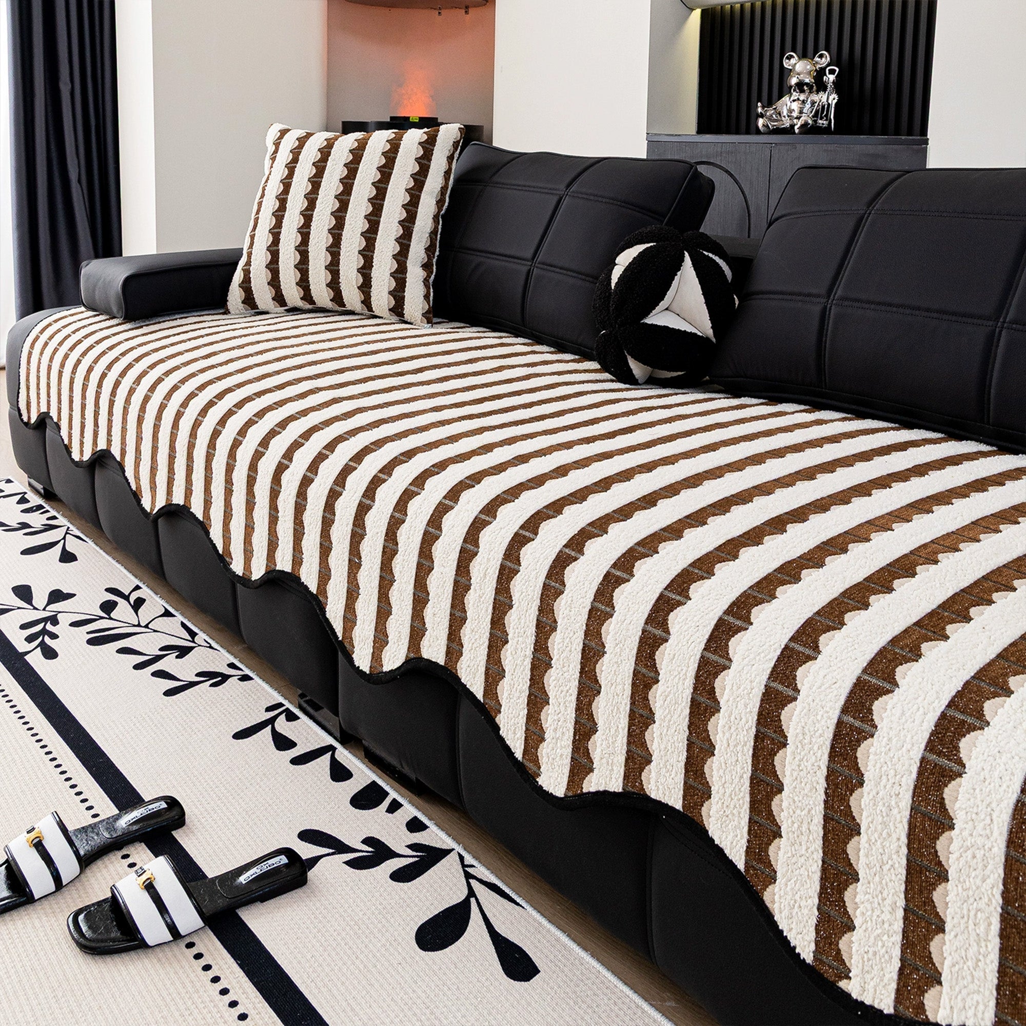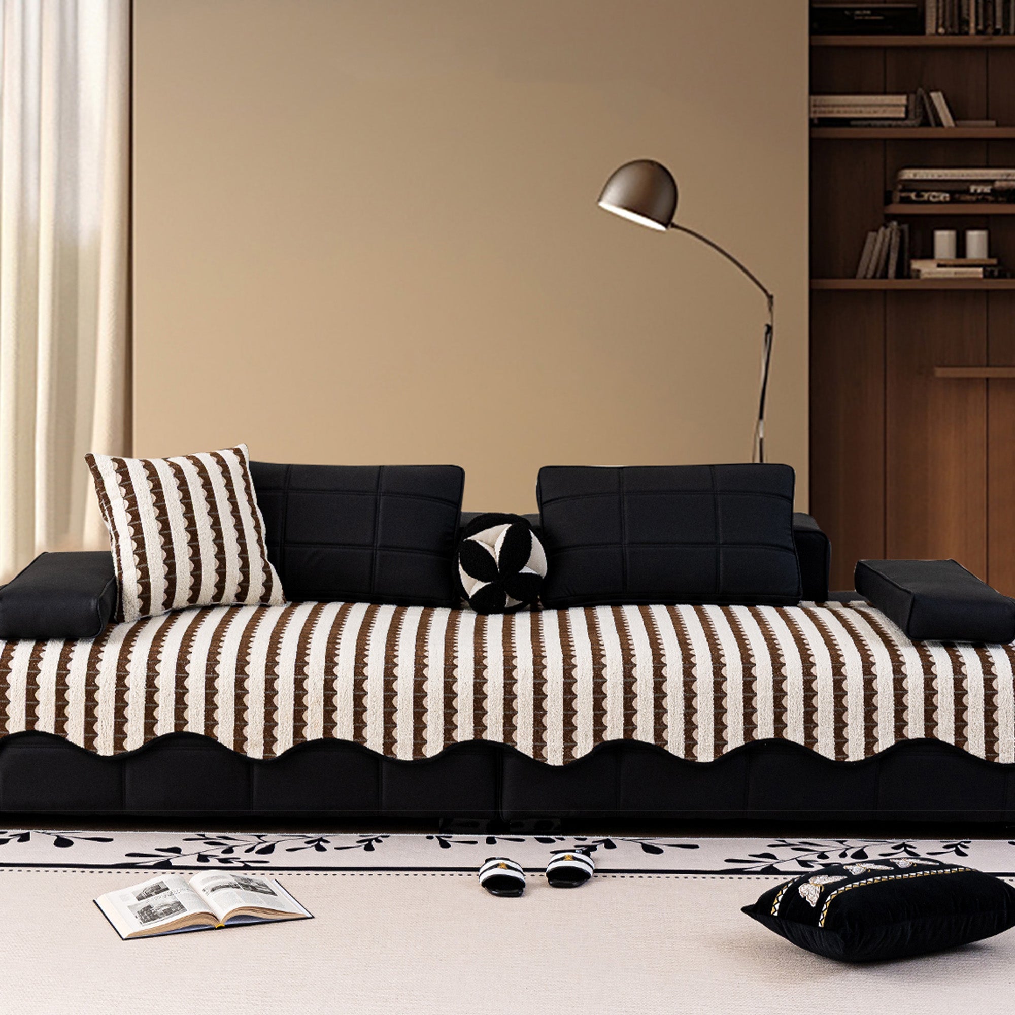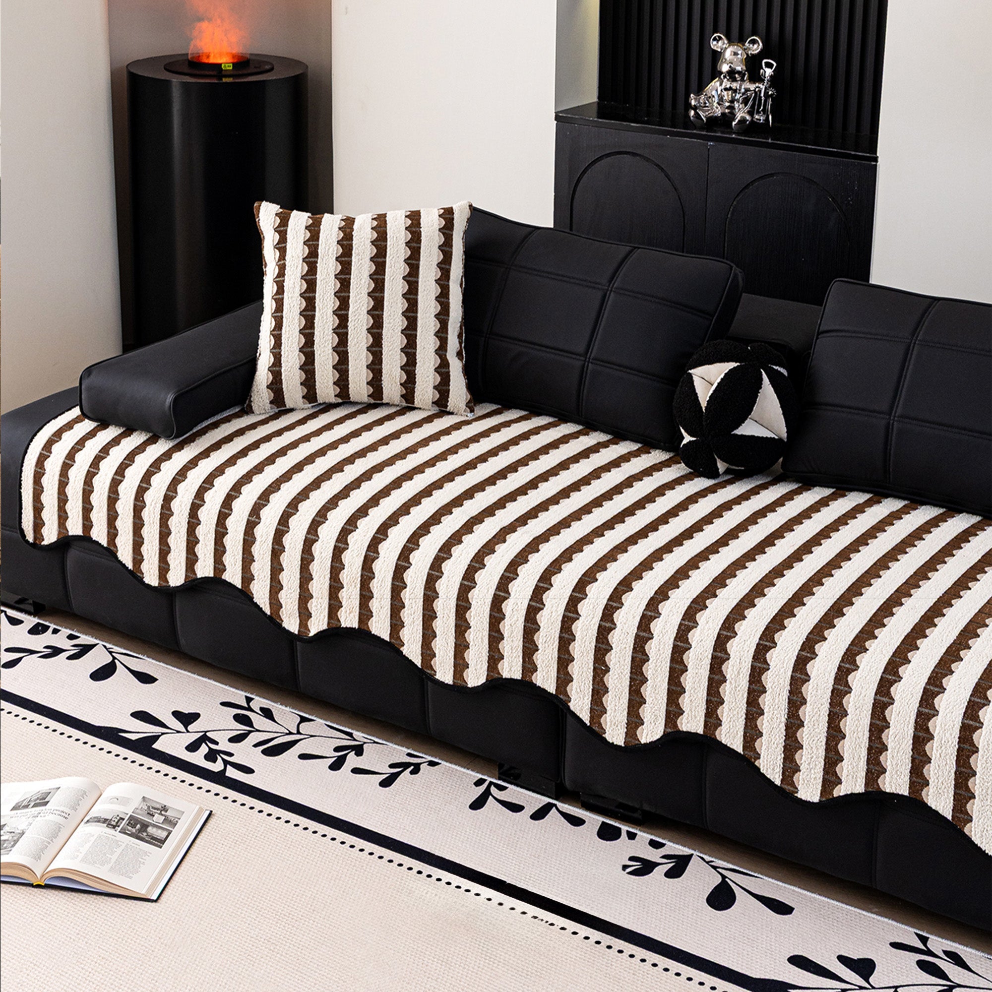 幾何学模様のストライプ柄シェニール素材の滑り止めソファカバー