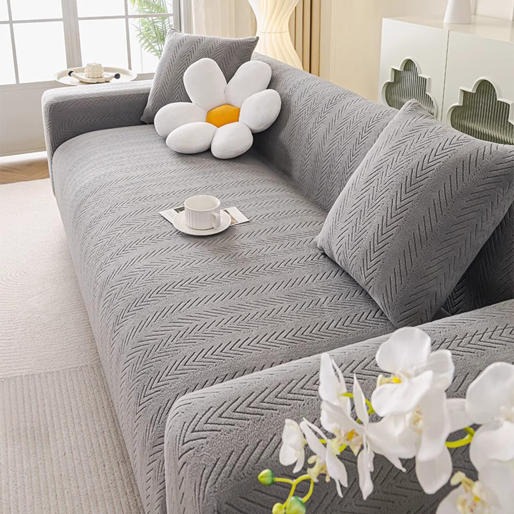 HerringSoft オールシーズン ストレッチ ソファ スリップカバーでソファをリフレッシュして保護しましょう。繊細なヘリンボーンの質感が、すっきりとした高級感を演出し、しわになりにくくぴったりフィットします。
