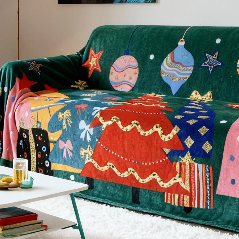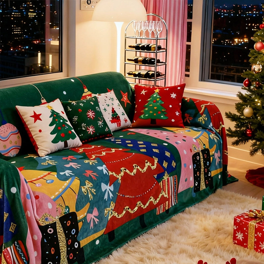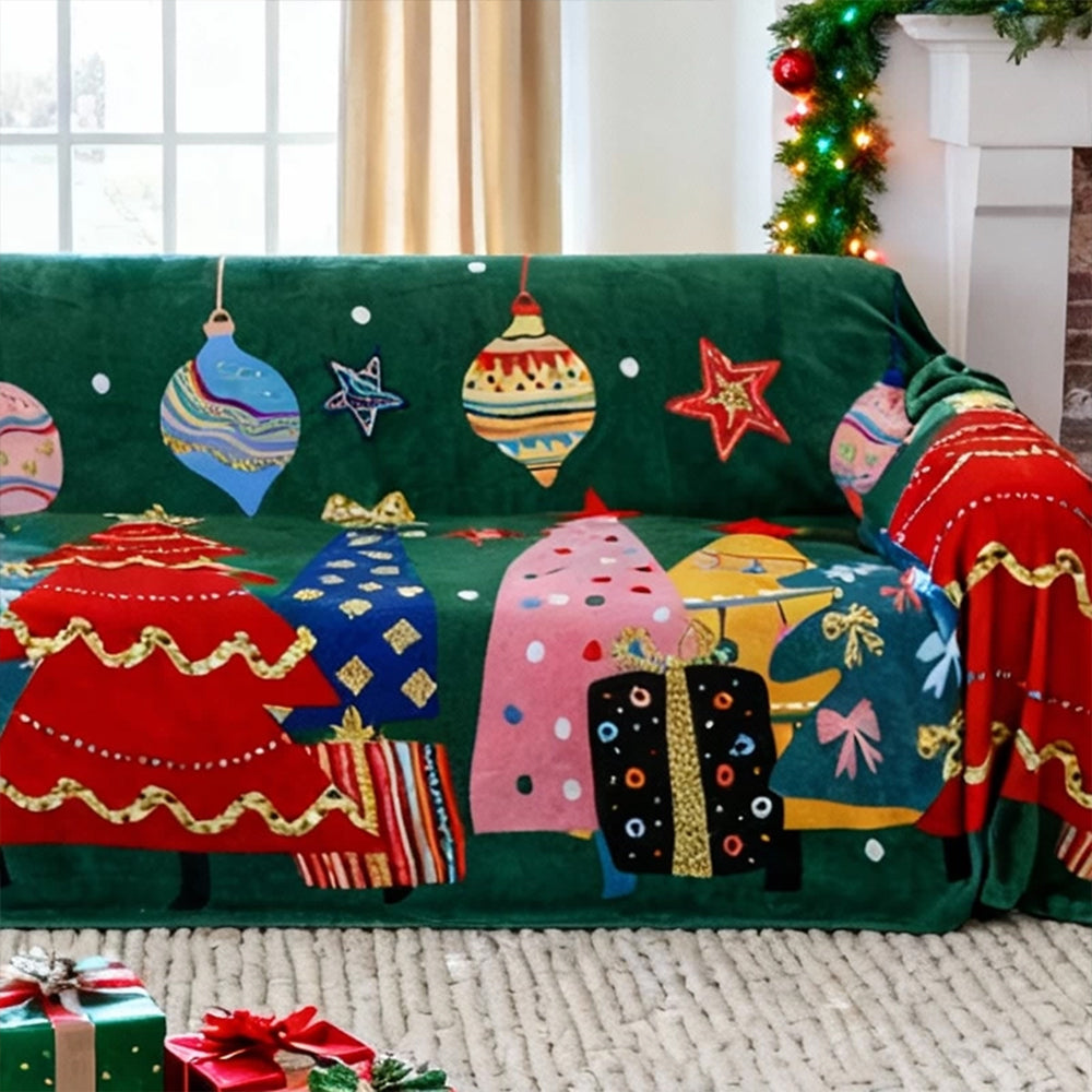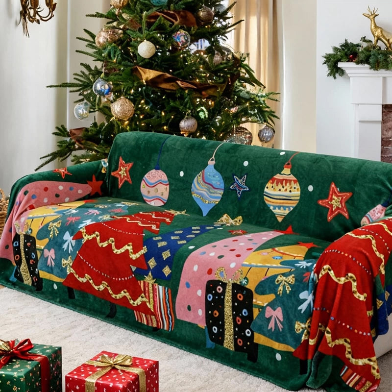 ホリデーチャーム プラッシュソファカバーで、ご自宅に楽しいホリデーの温かさをお届けします。遊び心のあるクリスマスオーナメント、ギフトボックス、そして華やかなツリーモチーフがあしらわれたこのカバーは、リビングルームを居心地の良いクリスマスワンダーランドへと変身させます。ペットにも優しい、とても柔らかなプラッシュ生地で作られており、快適な着心地と、汚れ、ペットの毛、傷からしっかりと保護します。
