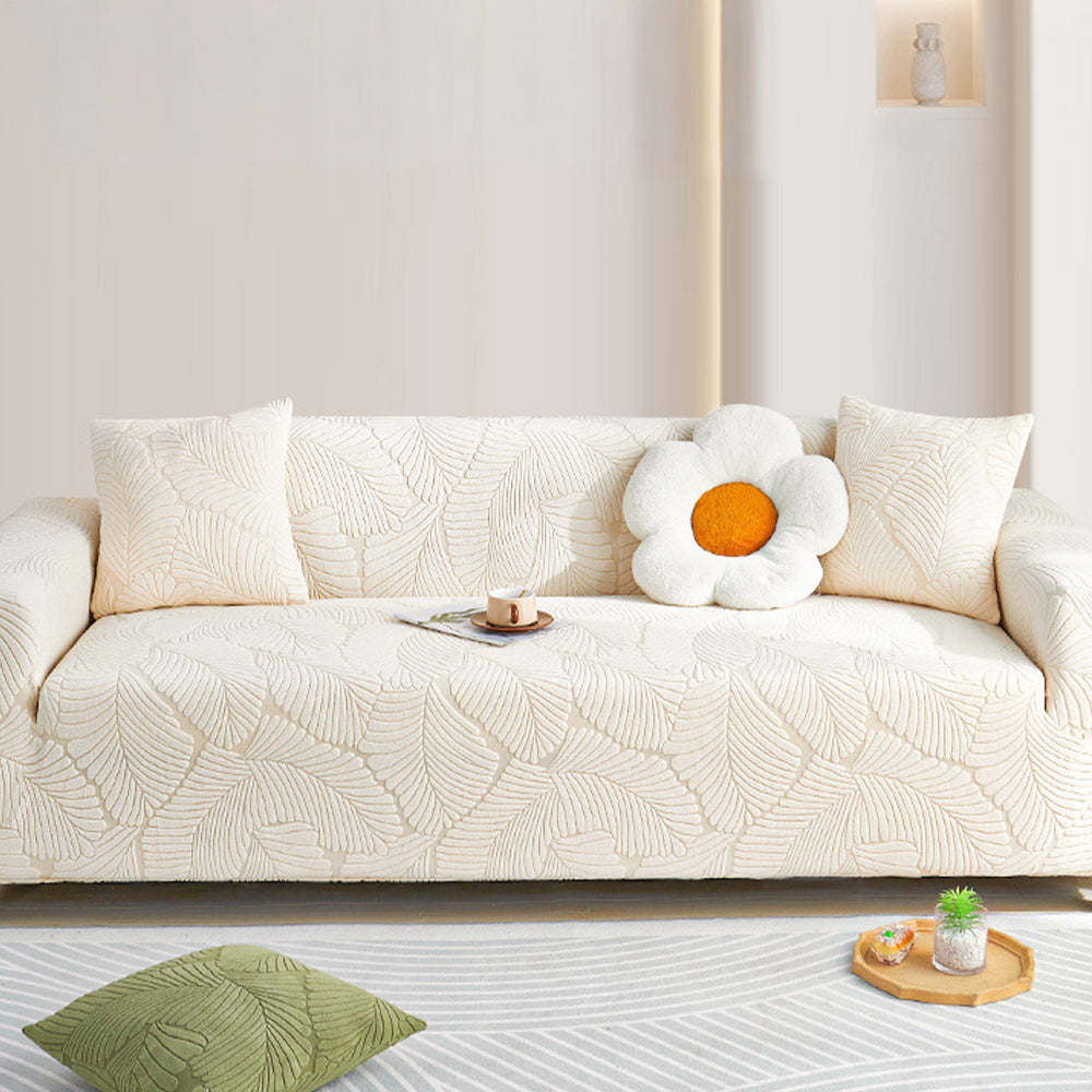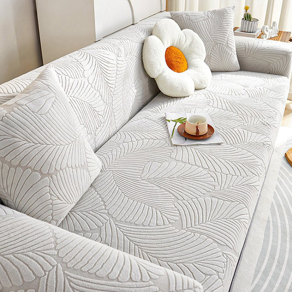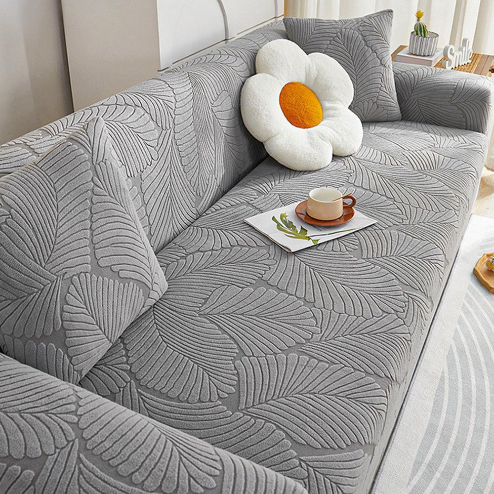 LeafWeaveストレッチ フルカバーソファスリップカバーで、リビングスペースをグレードアップ。洗練されたデザインと実用性を完璧に両立した逸品です。極上の柔らかさと伸縮性を誇るジャカード生地を使用し、360°シームレスにカバーしながら、こぼれ、ペットの毛、傷、そして日常の摩耗からソファを守ります。ご家族、ペットを飼っている方、そしてより清潔で上質な住まいを求める方に最適です。