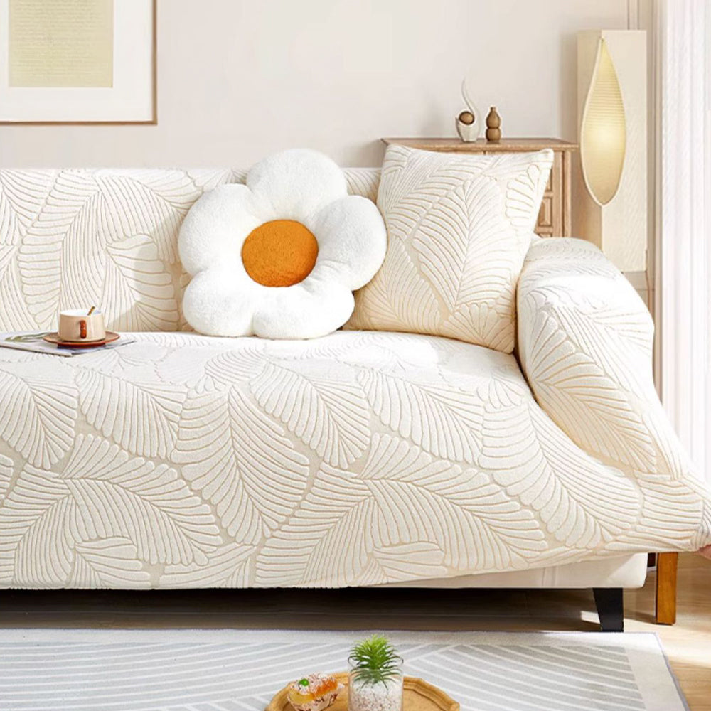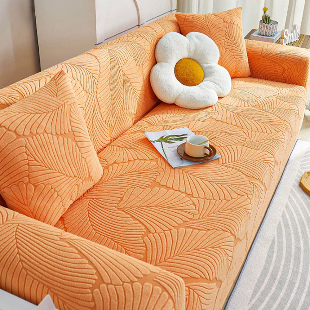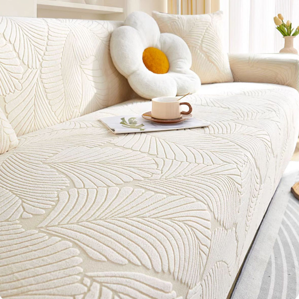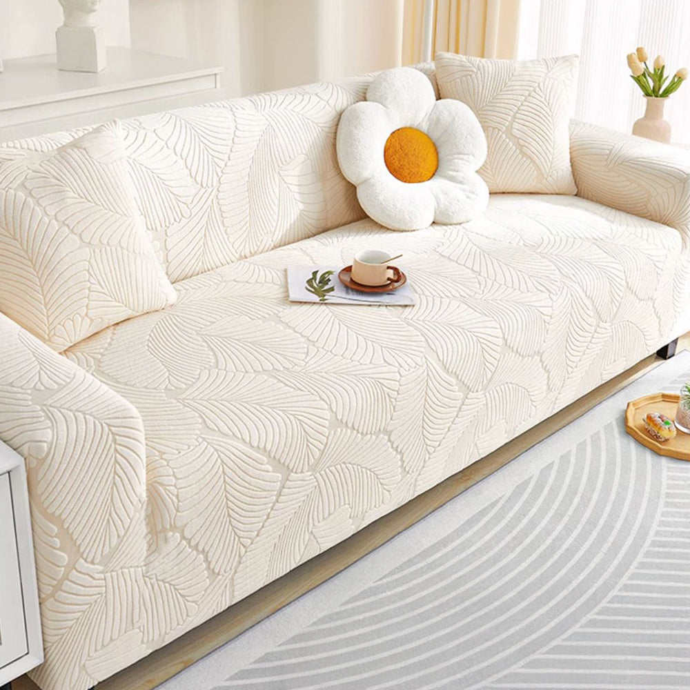 LeafWeaveストレッチ フルカバーソファスリップカバーで、リビングスペースをグレードアップ。洗練されたデザインと実用性を完璧に両立した逸品です。極上の柔らかさと伸縮性を誇るジャカード生地を使用し、360°シームレスにカバーしながら、こぼれ、ペットの毛、傷、そして日常の摩耗からソファを守ります。ご家族、ペットを飼っている方、そしてより清潔で上質な住まいを求める方に最適です。