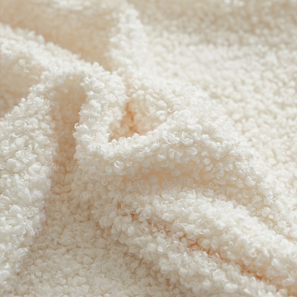 柔らかいテディ生地が暖かさと洗練さを加え、モダン、スカンジナビア、ニュートラルなインテリアに完璧にマッチします。