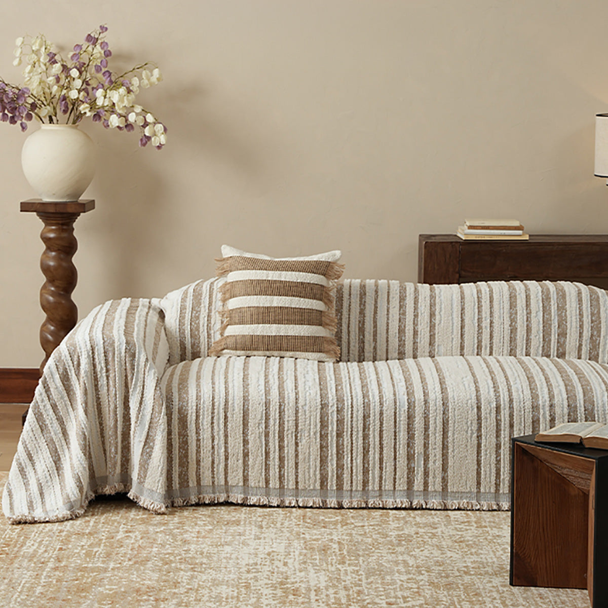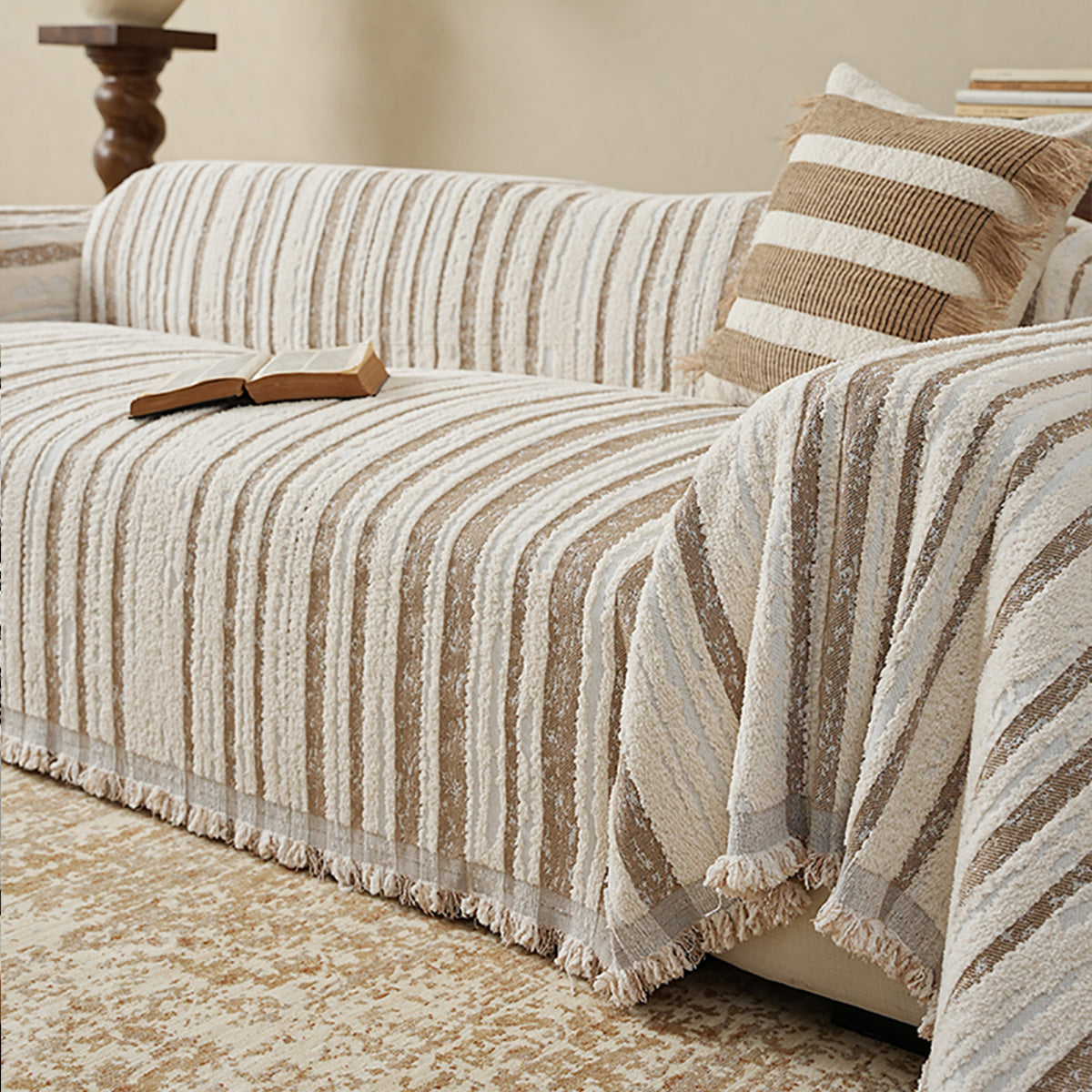 Bring refined texture and effortless style to your living space with our Textured Stripe Chenille Scratch-Resistant sofa Cover. Woven from plush, high-density chenille, this cover features dimensional stripes with subtle fringe edging—adding depth while protecting your sofa from everyday wear, pet hair, and scratches. Soft yet durable and pet-friendly, it elevates your décor and keeps seating looking fresh.