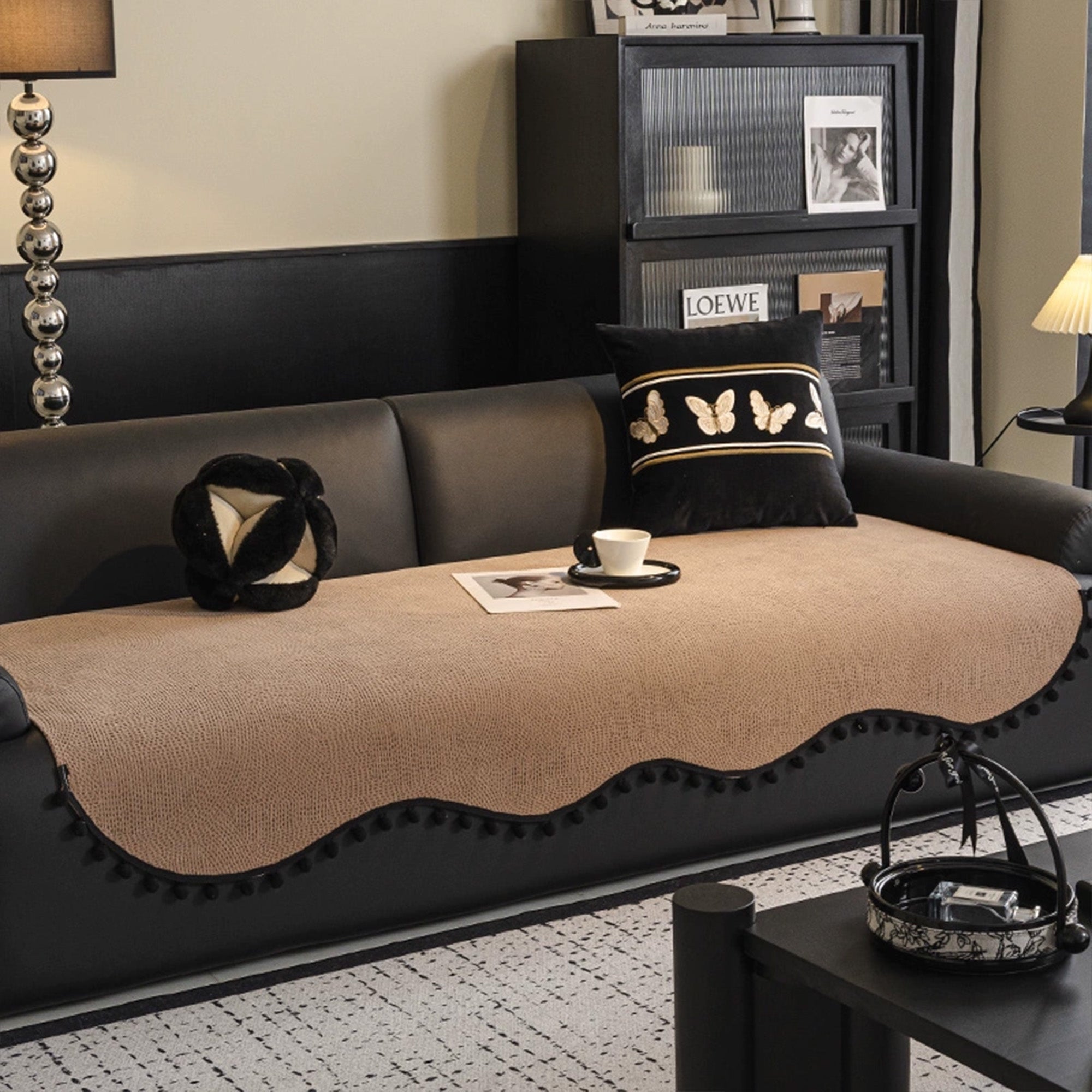 ヴィンテージチャーム シェニール ノンスリップソファカバーで、時代を超えた魅力と快適さをご自宅にお届けします。エレガントなスカラップエッジと遊び心のあるポンポントリムがアクセントになったこのカバーは、どんなリビングスペースにもレトロな雰囲気を添えます。