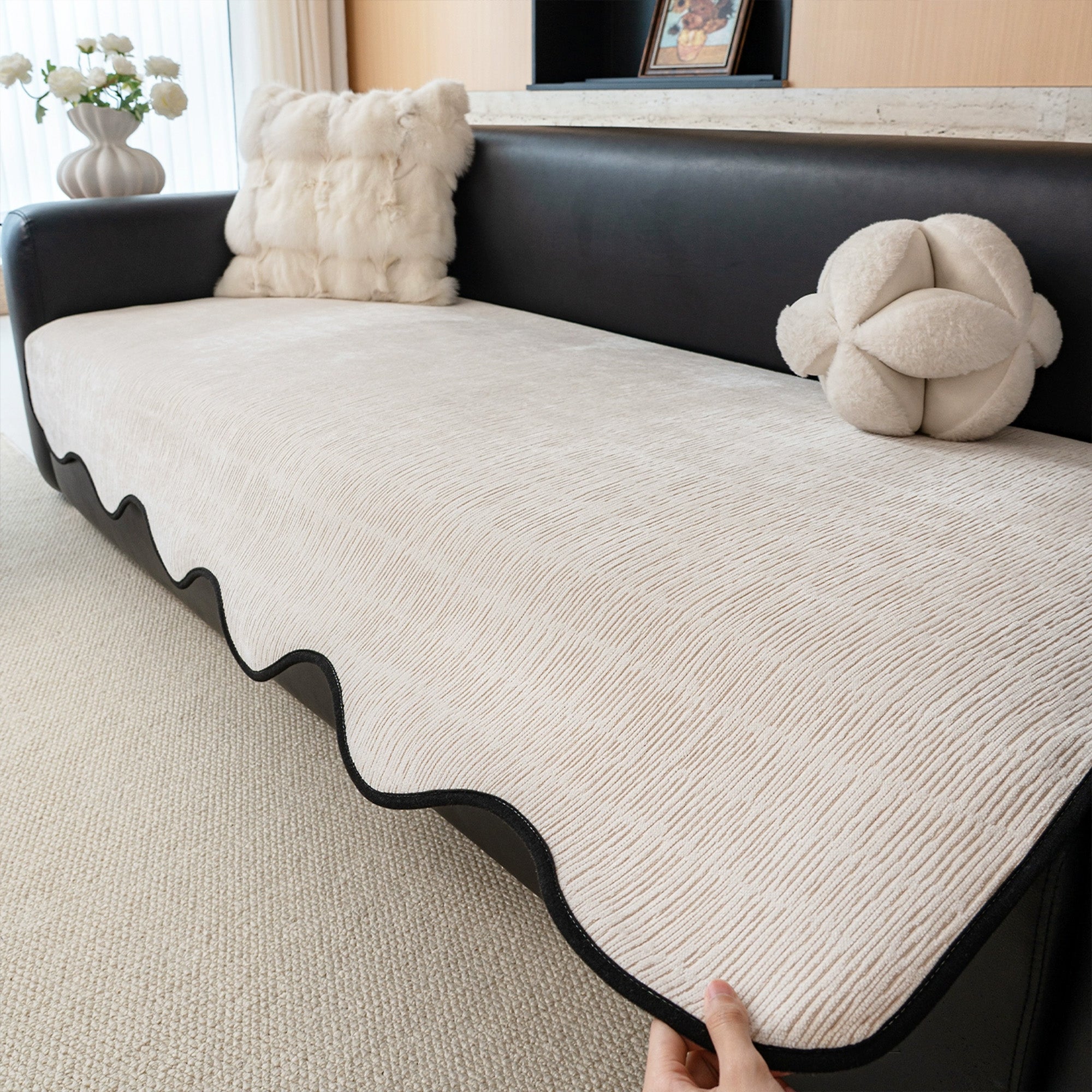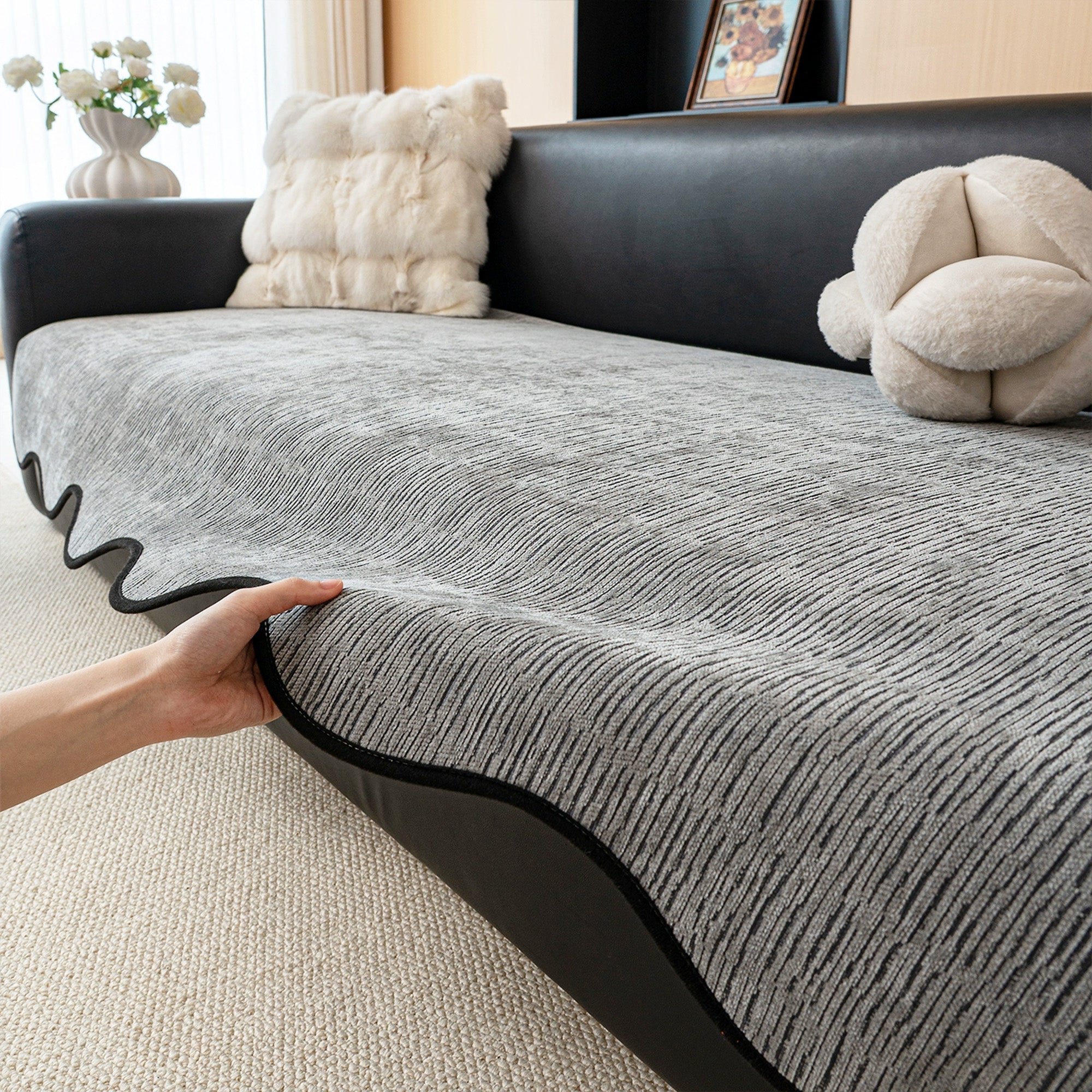 ウェーブエッジのシェニール素材の滑り止めソファカバー