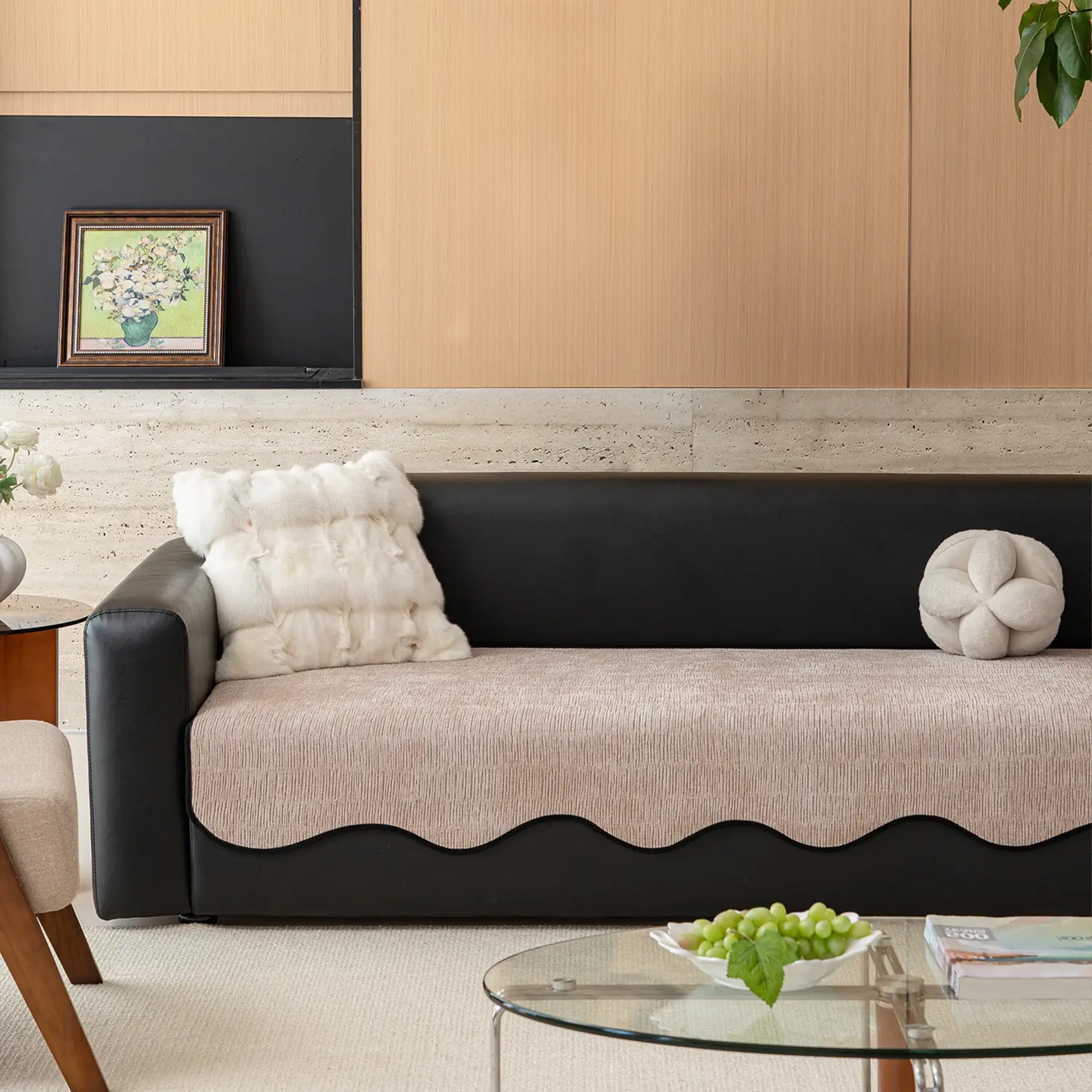 モダンな魅力と実用的な保護性能を完璧に両立した、ウェーブエッジ・シェニール・ノンスリップ・ソファカバーで、リビングスペースをワンランクアップさせましょう。大胆な黒のパイピングを施した特徴的なウェーブボーダーが印象的なデザインアクセントとなり、耐久性のあるシェニール生地が柔らかく心地よい感触を提供します。裏面には滑り止め加工が施されているため、しっかりと固定されるため、ご家族やペットを飼っている方にも最適です。