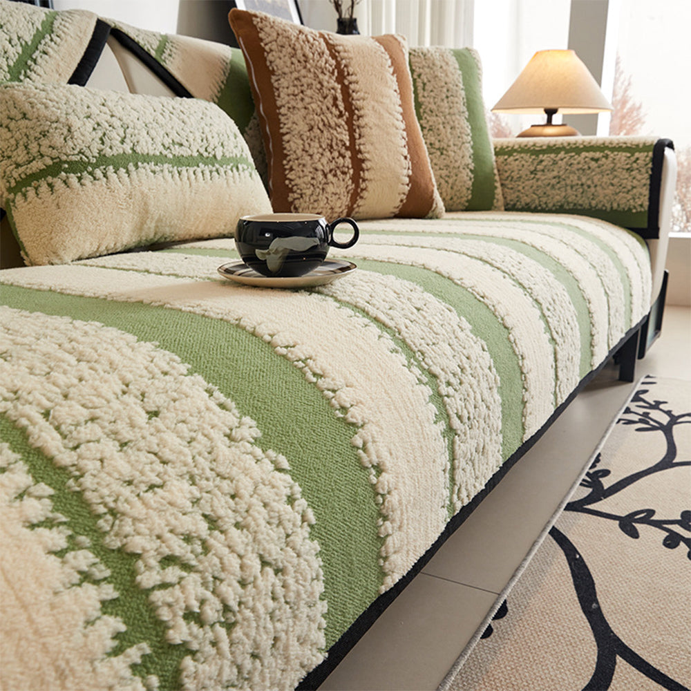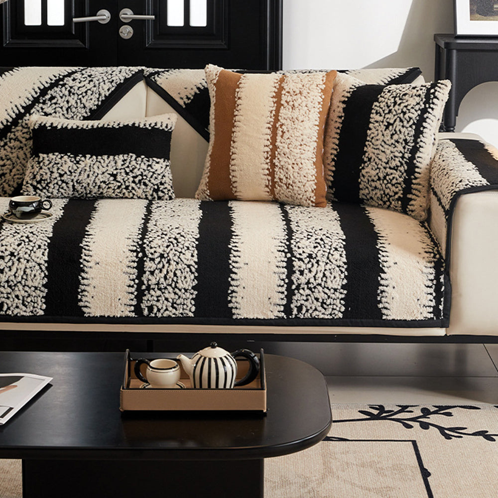 心地よいリッジストライププラッシュ滑り止めソファカバー