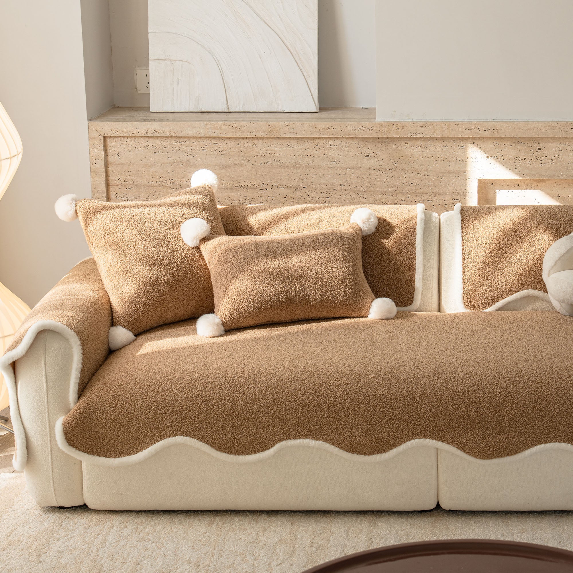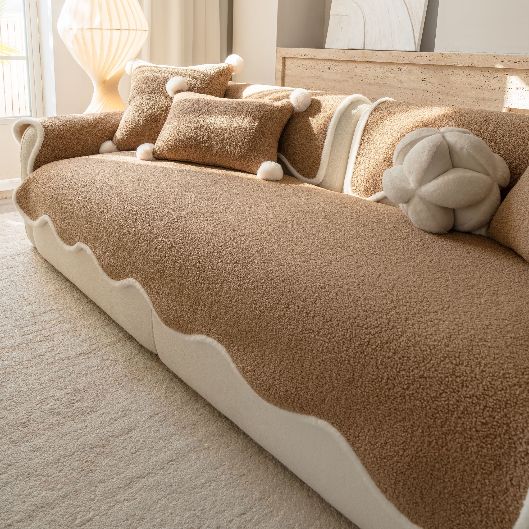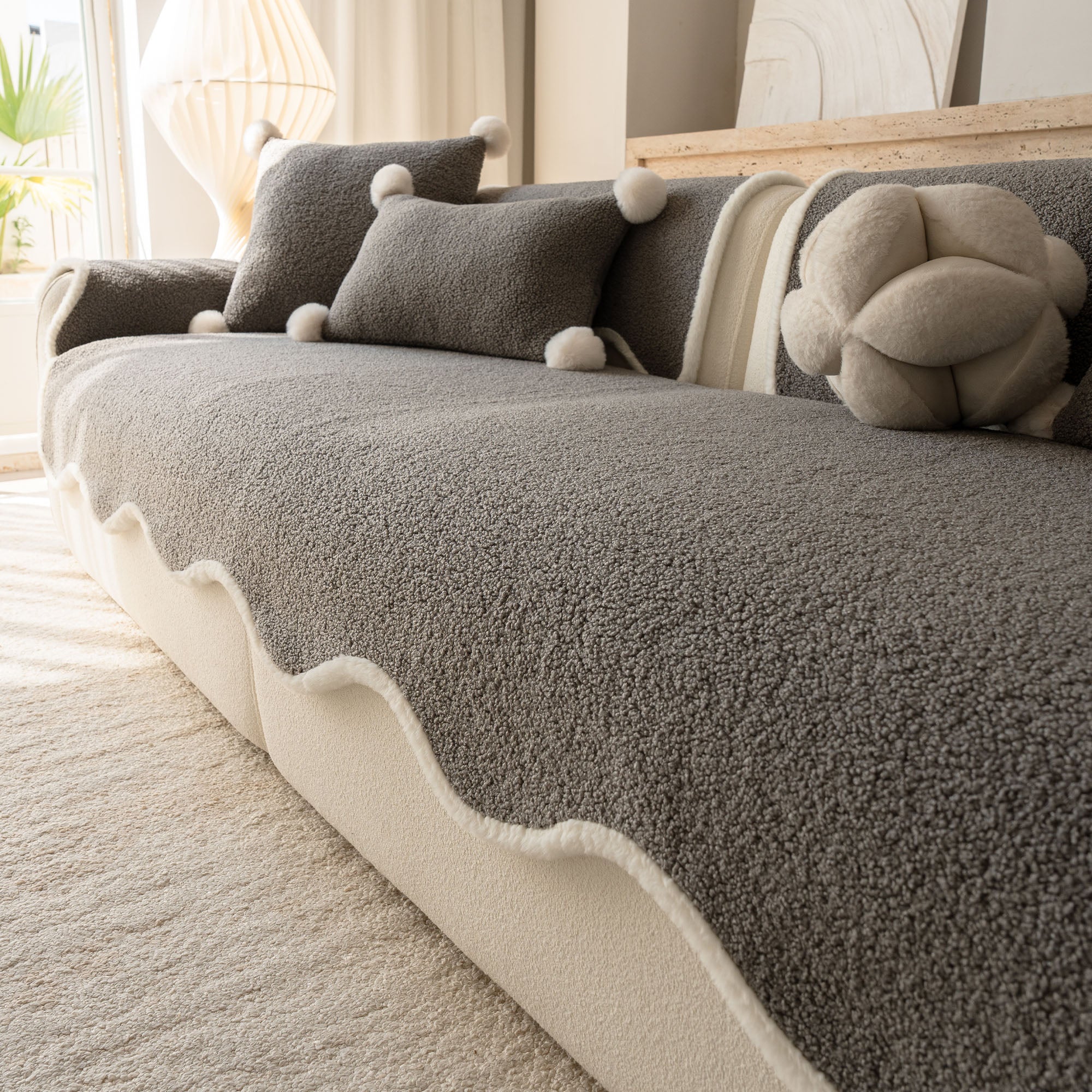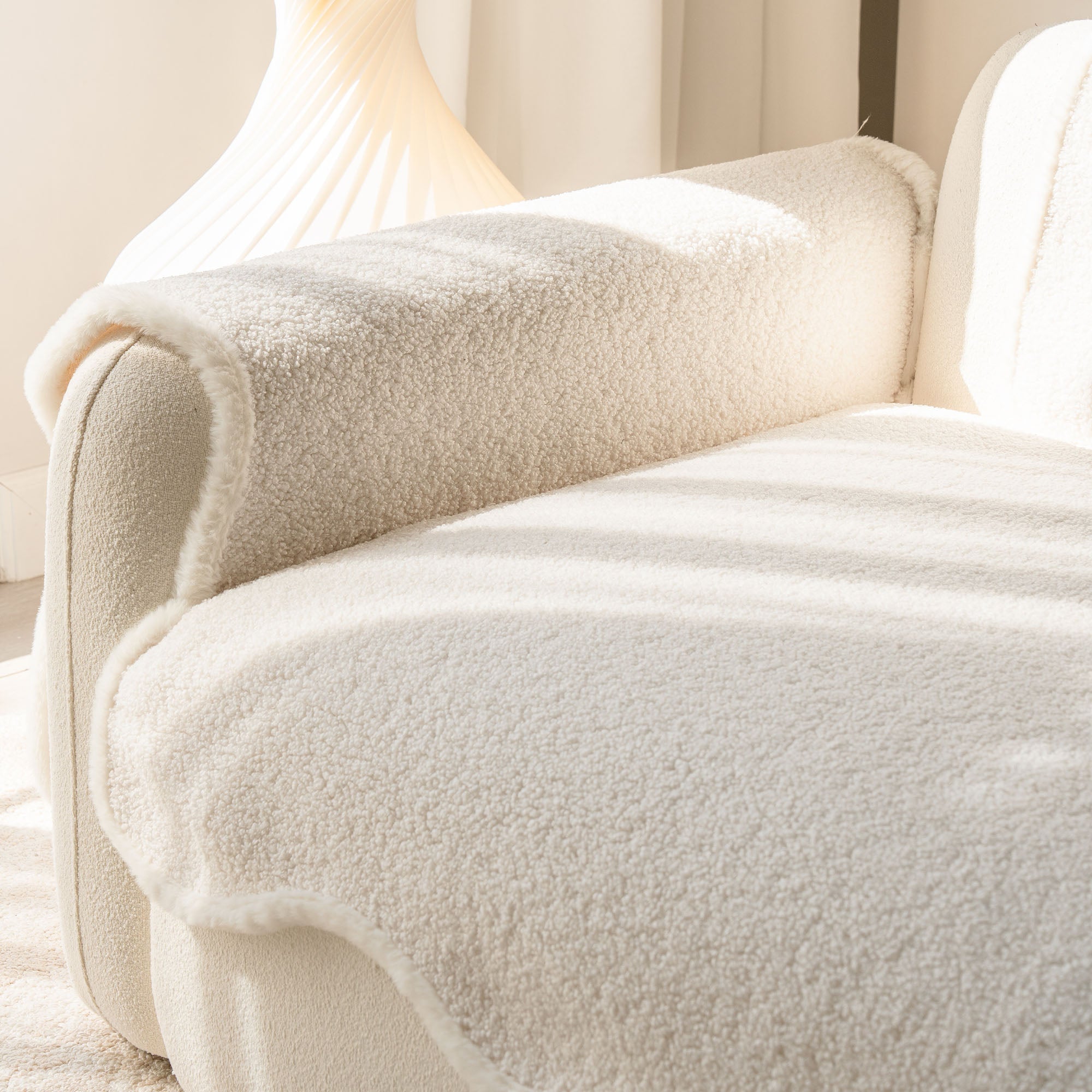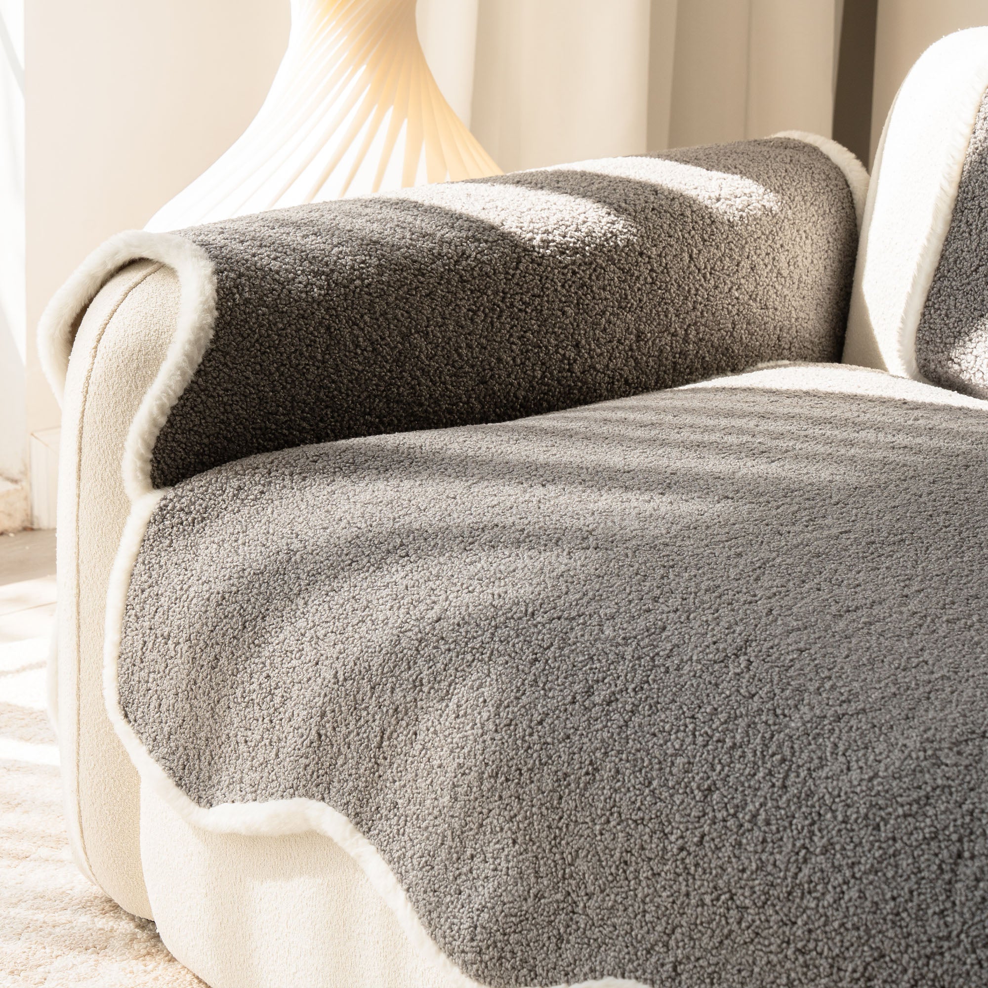 コージーシアリングシェルパノンスリップソファカバーで、ソファを静かな贅沢に包み込みましょう。高密度でふっくらとしたシェルパパイルは、まるで雲のように柔らかな肌触りで、秋冬を通して美しく着こなせます。しっかりとした滑り止め加工の裏地が、シートクッションやアームレストにしっかりとフィット。柔らかなスカラップ模様の縁が、洗練されたデザイナー仕上げを演出します。ペットやご家族にも優しく、髪の毛、傷、パンくず、日常のこぼれなどからソファを守ります。リビングルームはいつでもお客様をお迎えできる快適な空間です。