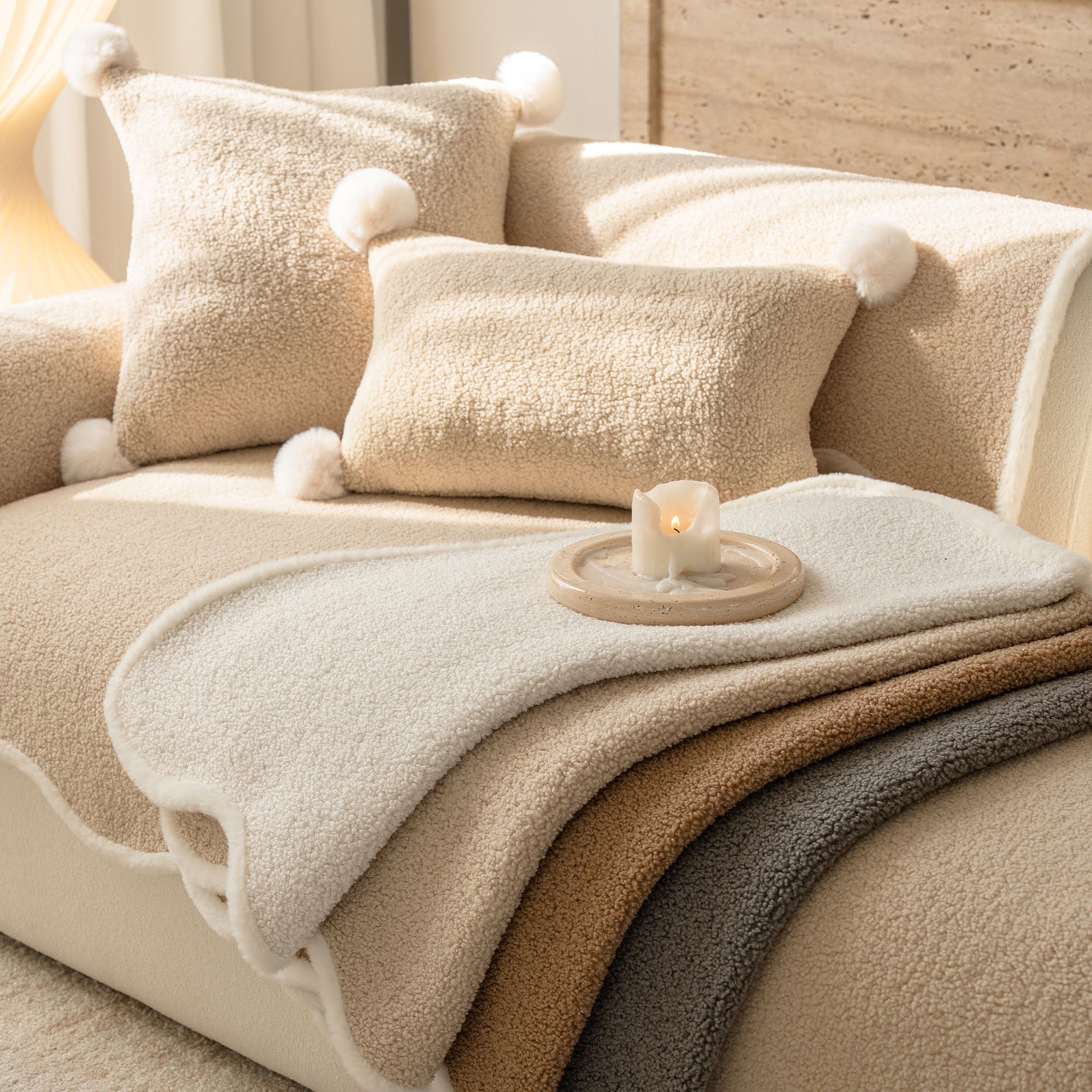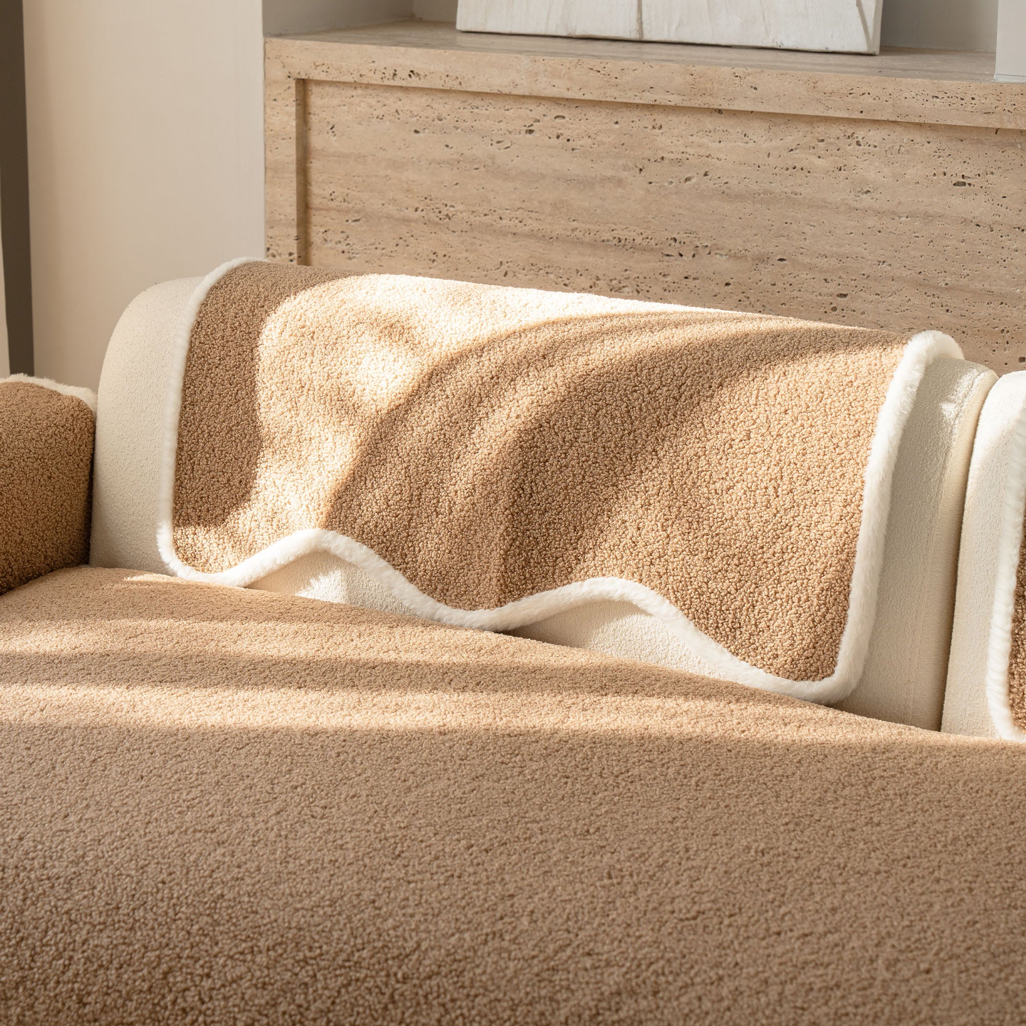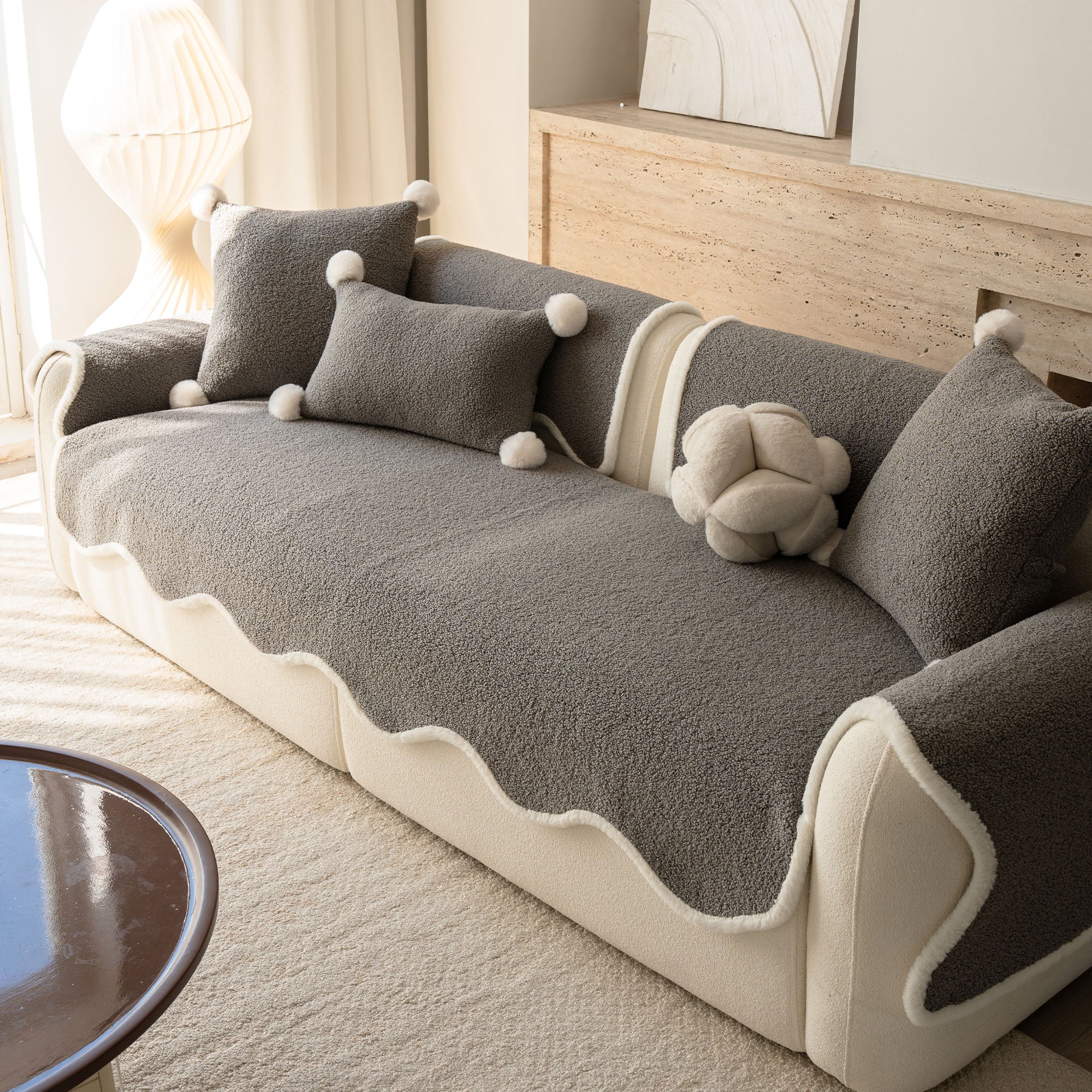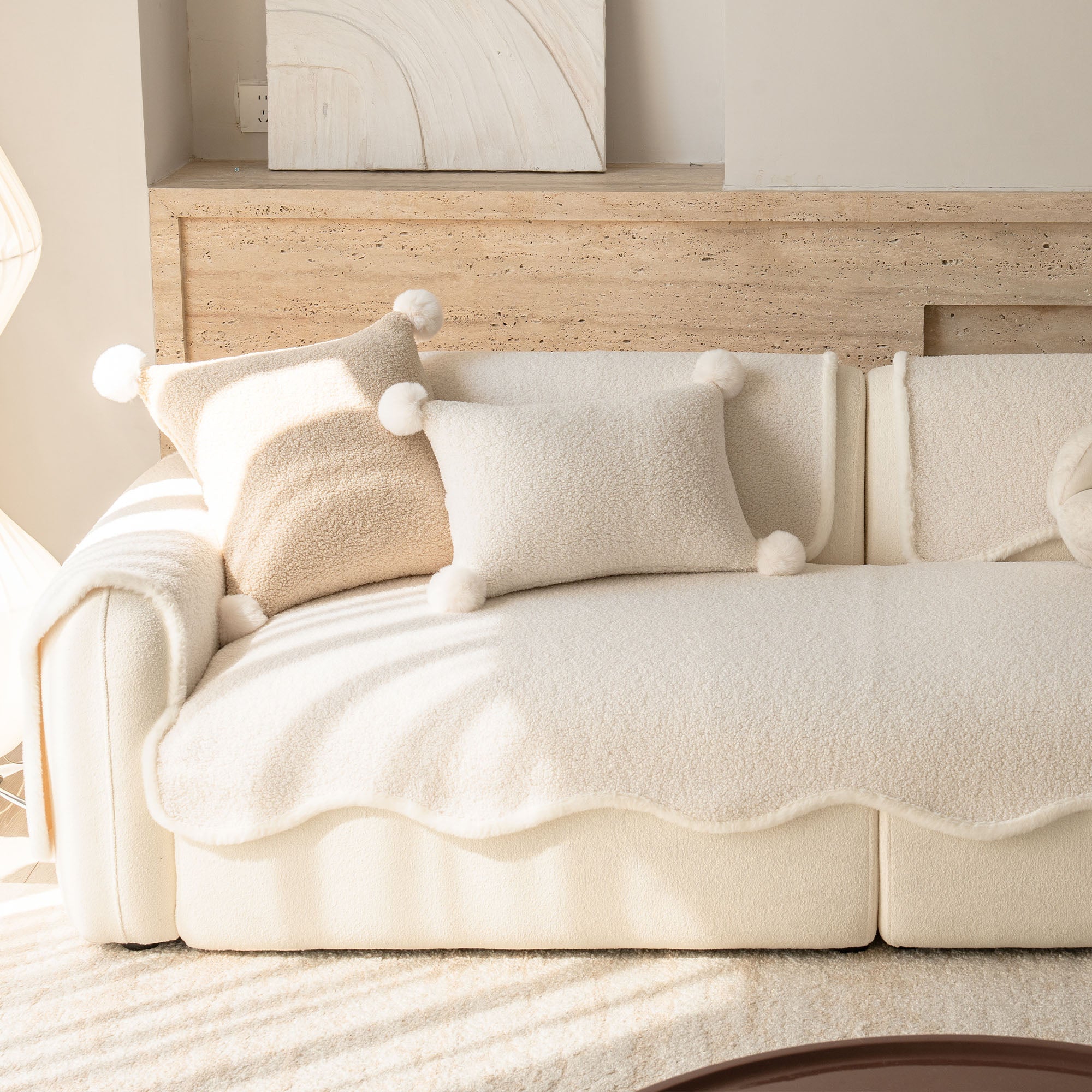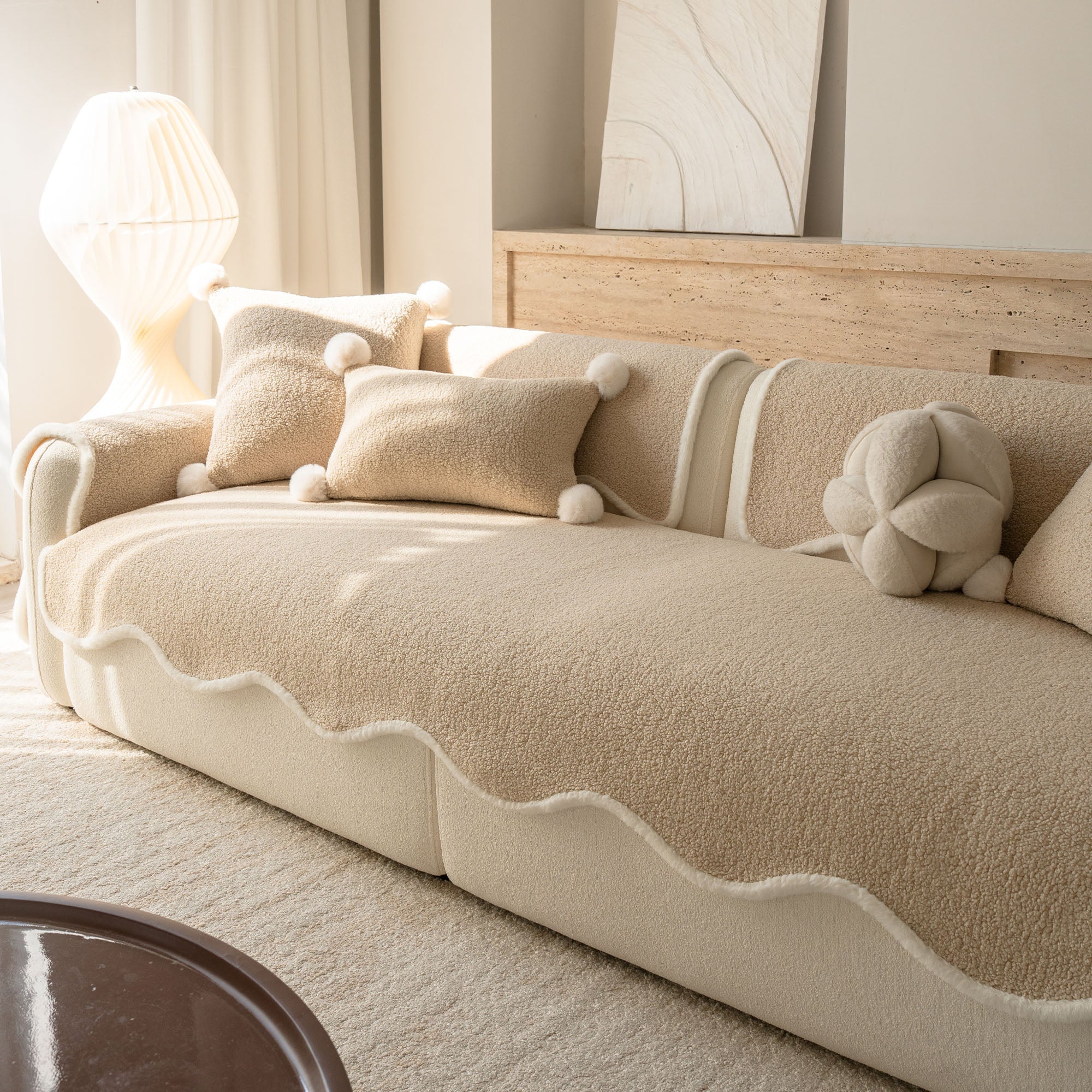 コージーシアリングシェルパノンスリップソファカバーで、ソファを静かな贅沢に包み込みましょう。高密度でふっくらとしたシェルパパイルは、まるで雲のように柔らかな肌触りで、秋冬を通して美しく着こなせます。しっかりとした滑り止め加工の裏地が、シートクッションやアームレストにしっかりとフィット。柔らかなスカラップ模様の縁が、洗練されたデザイナー仕上げを演出します。ペットやご家族にも優しく、髪の毛、傷、パンくず、日常のこぼれなどからソファを守ります。リビングルームはいつでもお客様をお迎えできる快適な空間です。