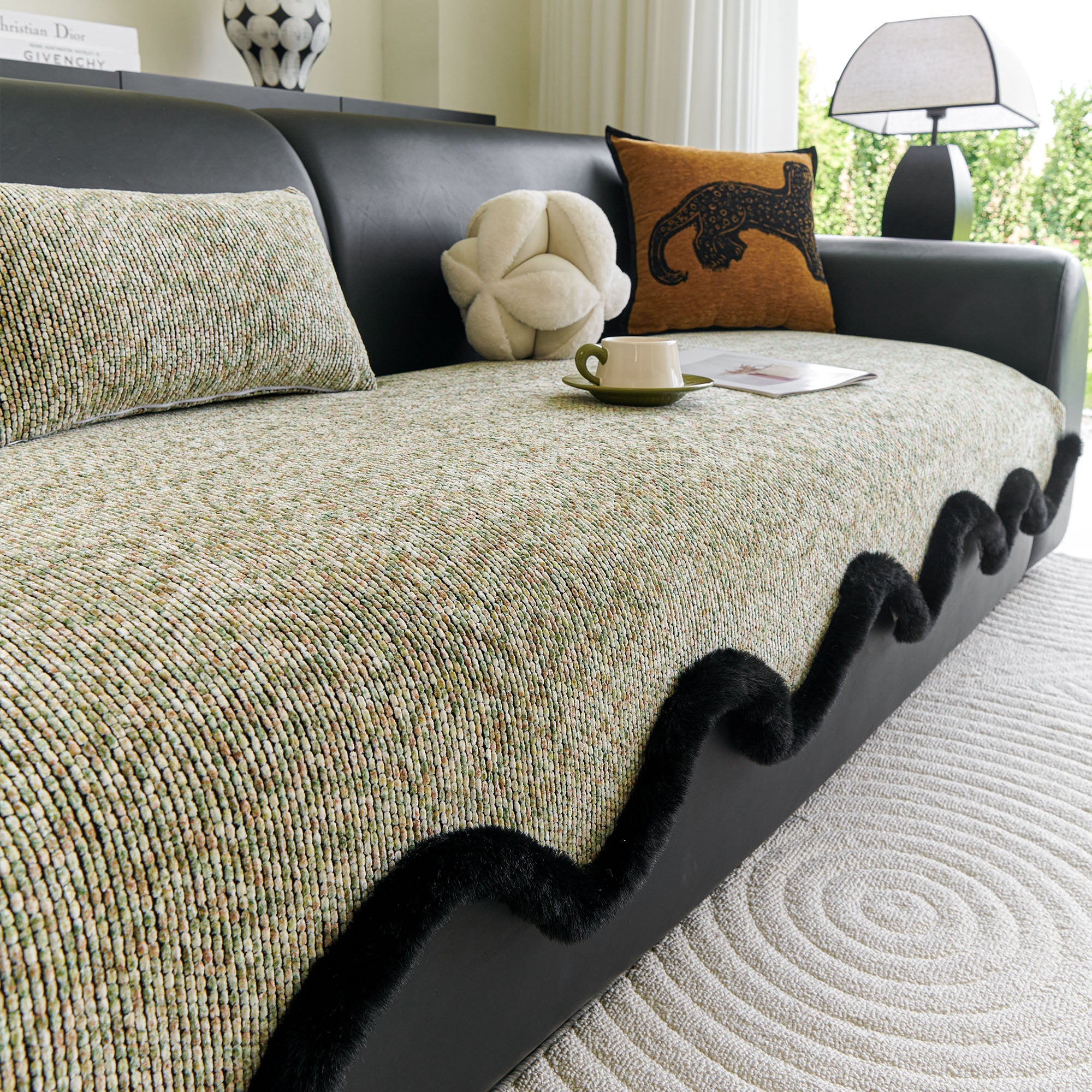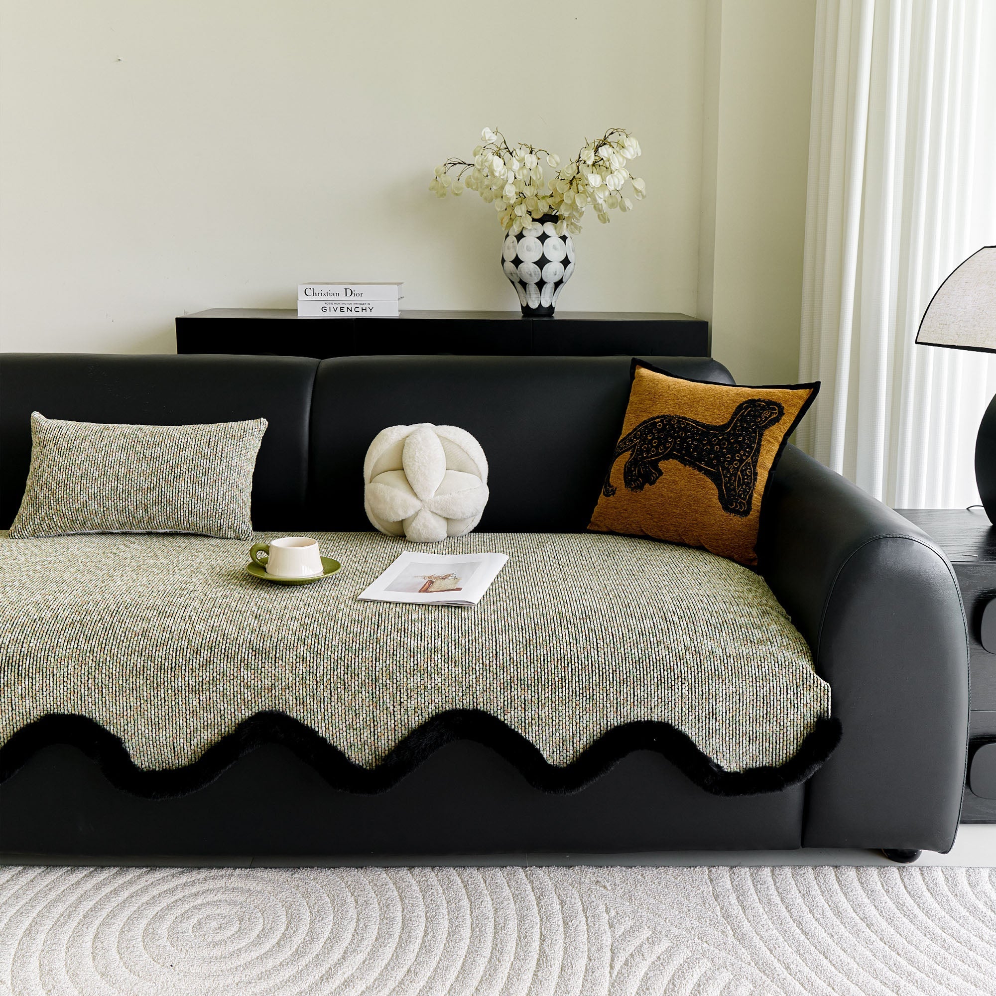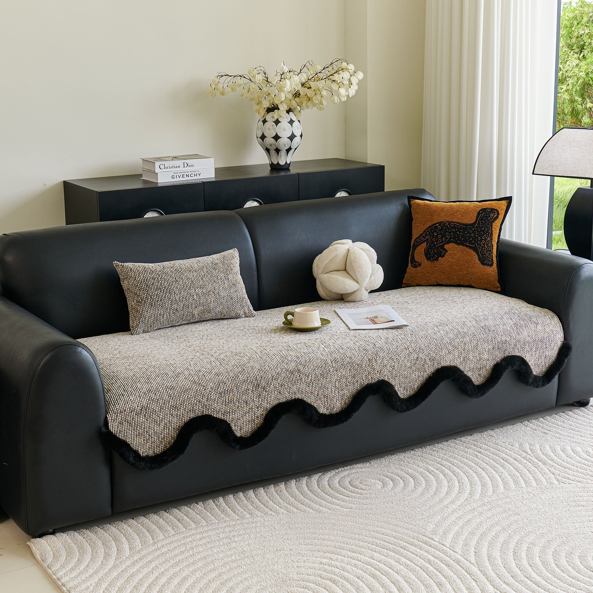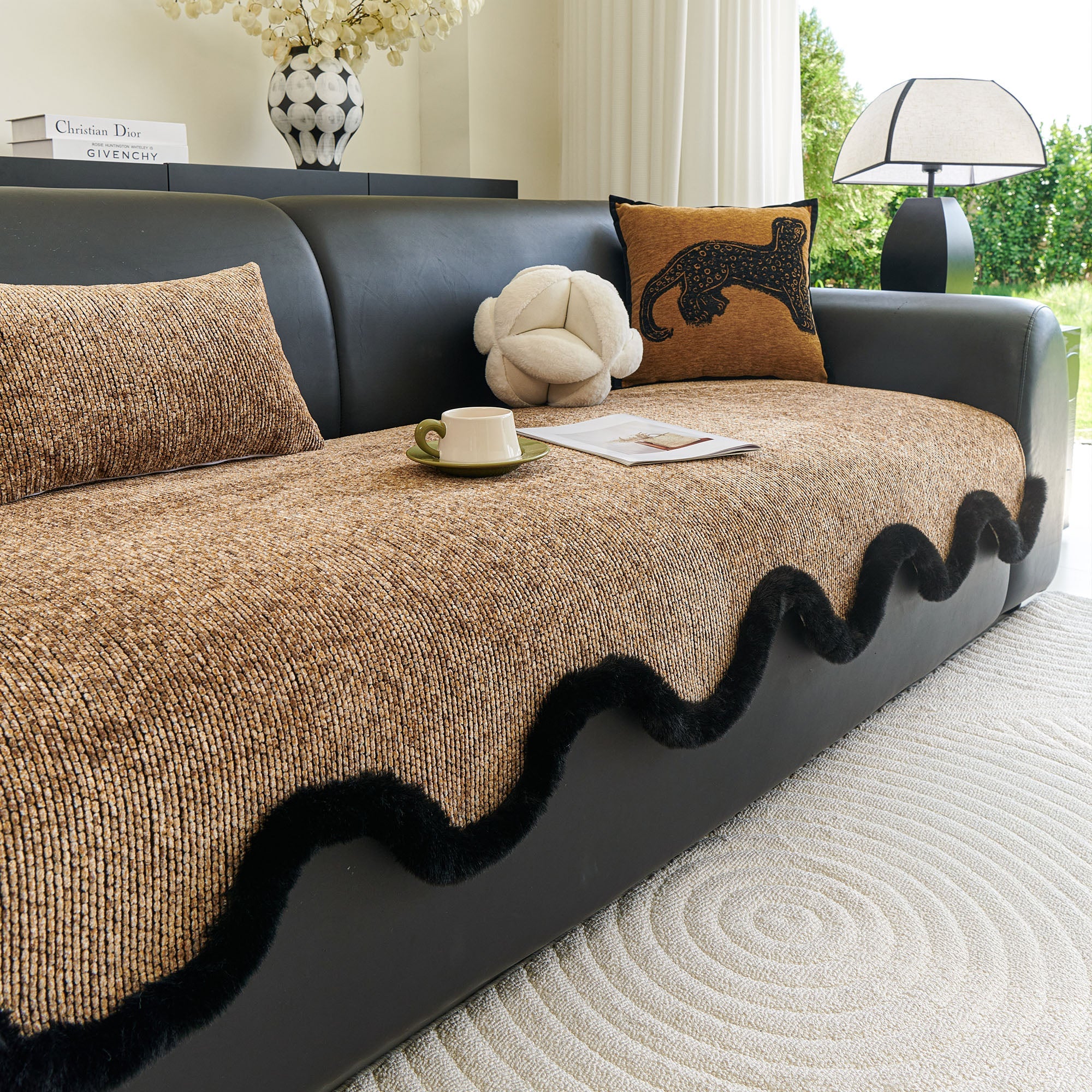 ミッドセンチュリーウェーブシェニール滑り止めソファカバー