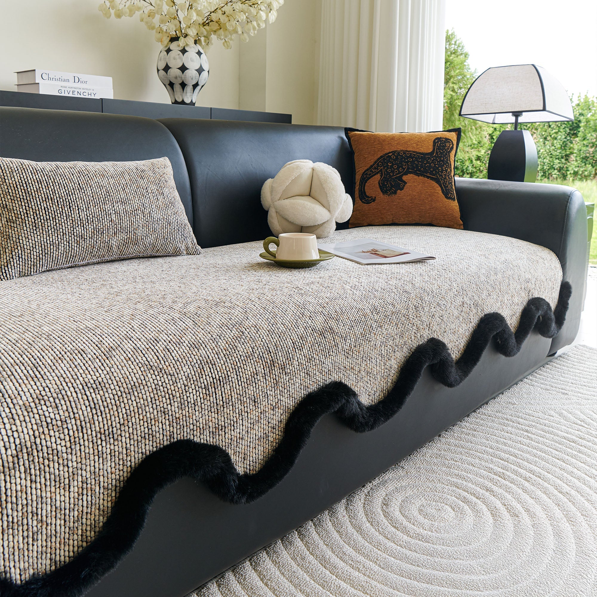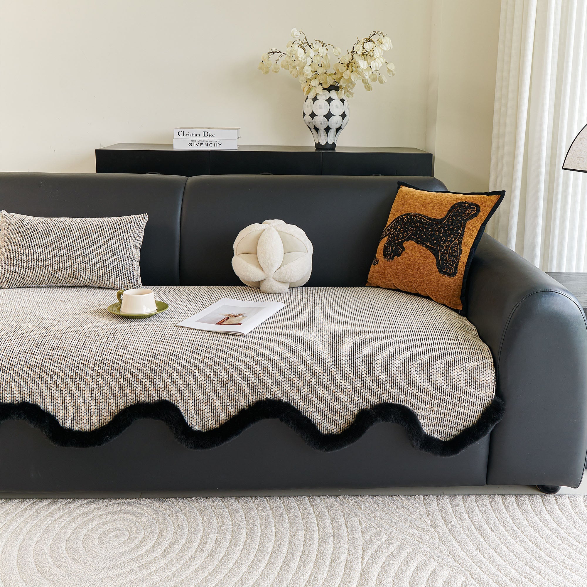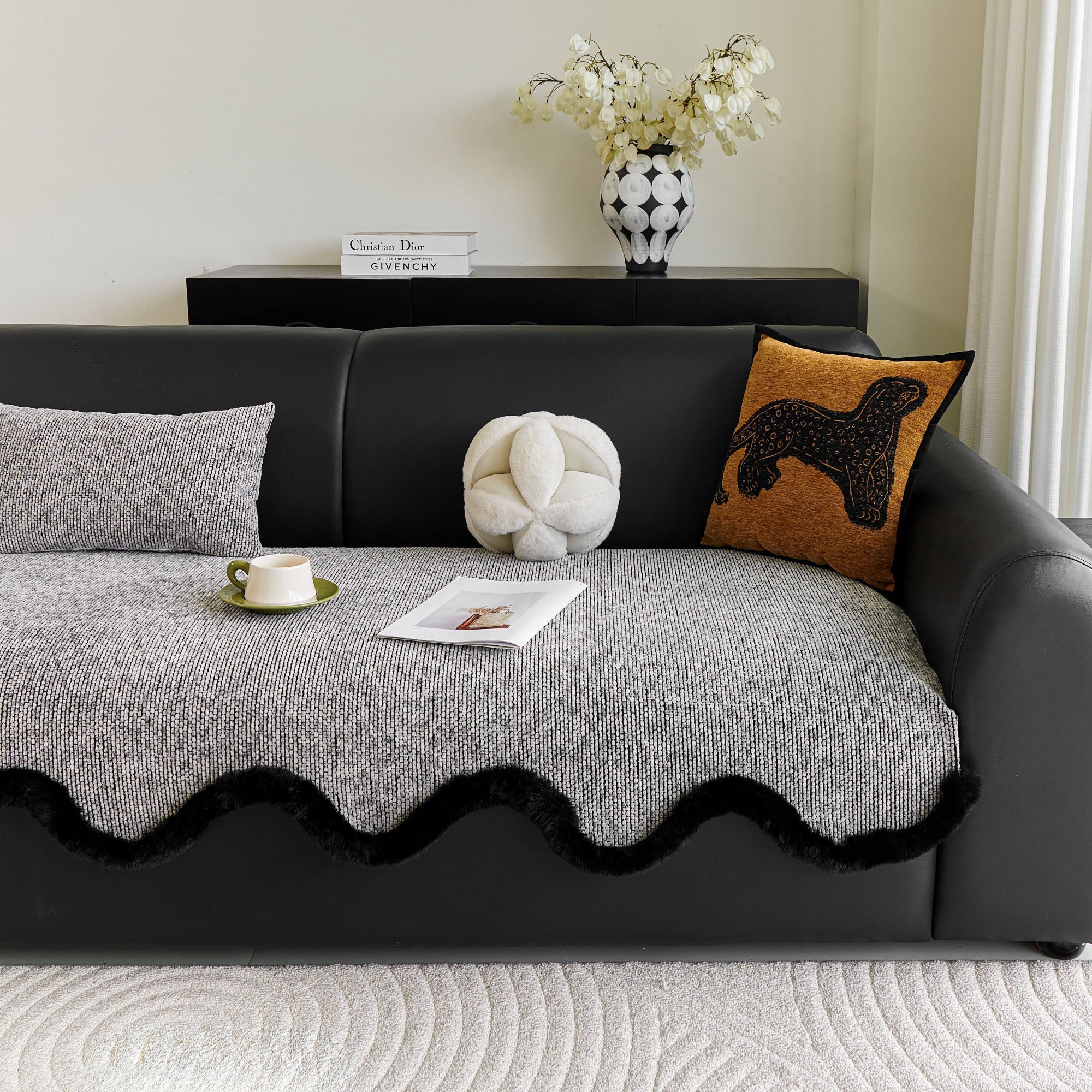 ミッドセンチュリーウェーブシェニール滑り止めソファカバー