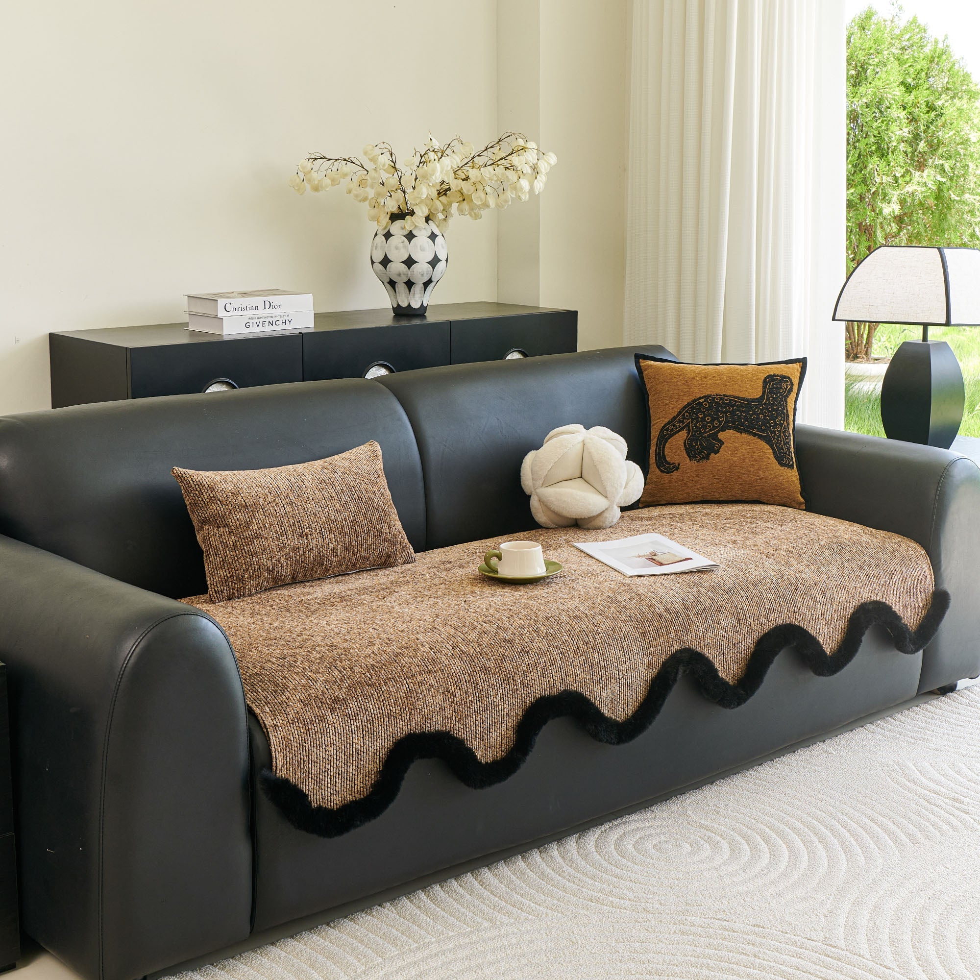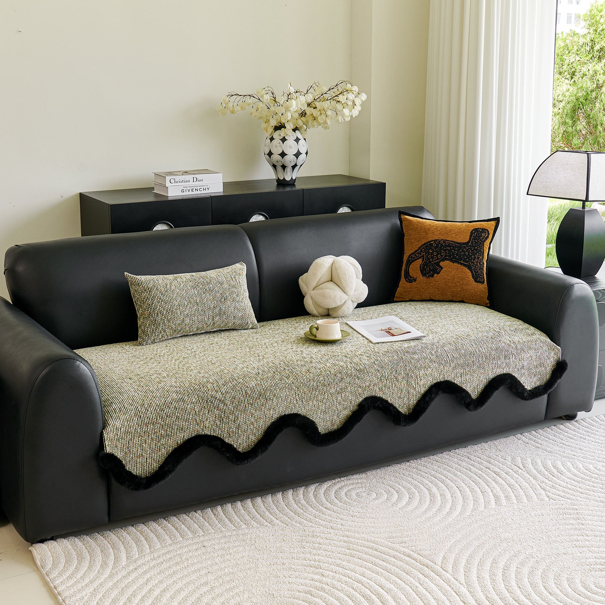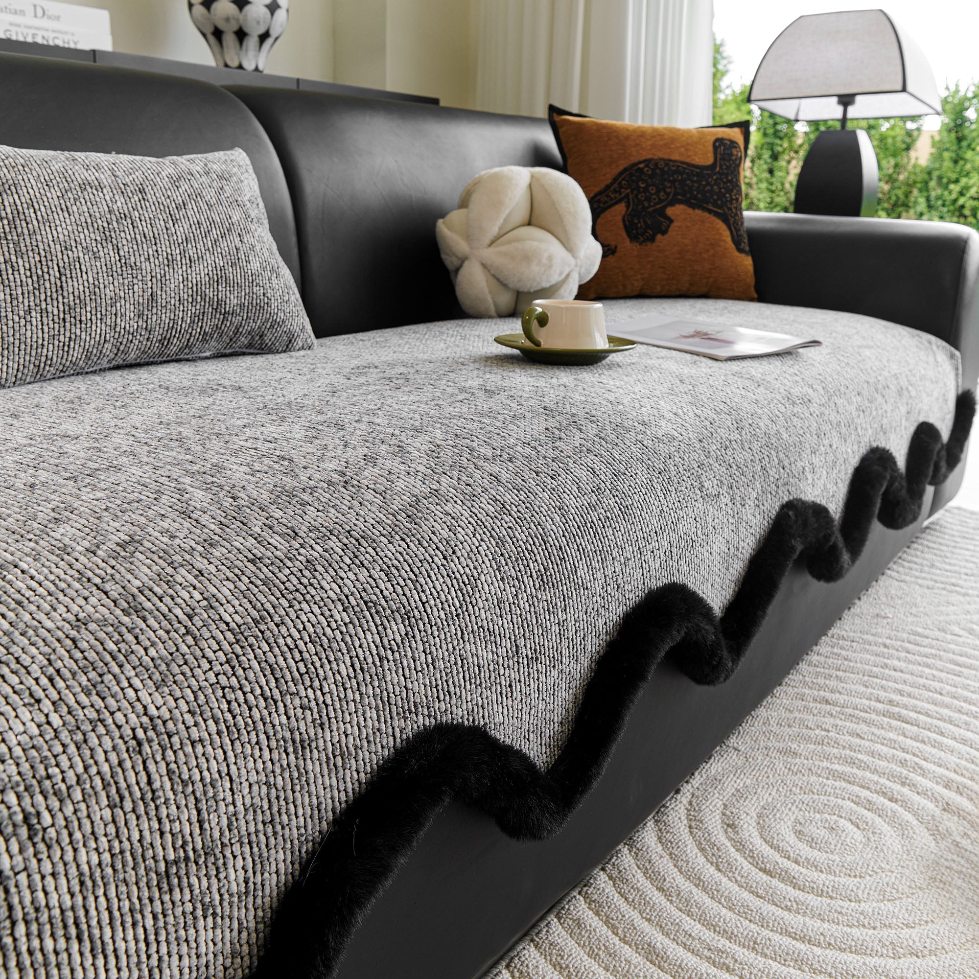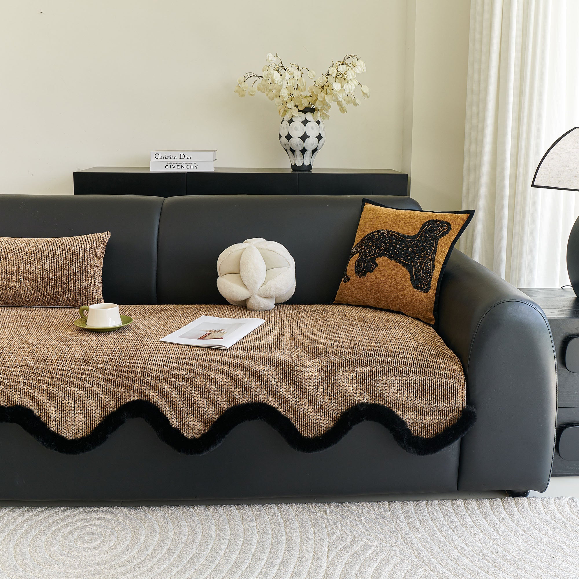 ミッドセンチュリーウェーブシェニール滑り止めソファカバー