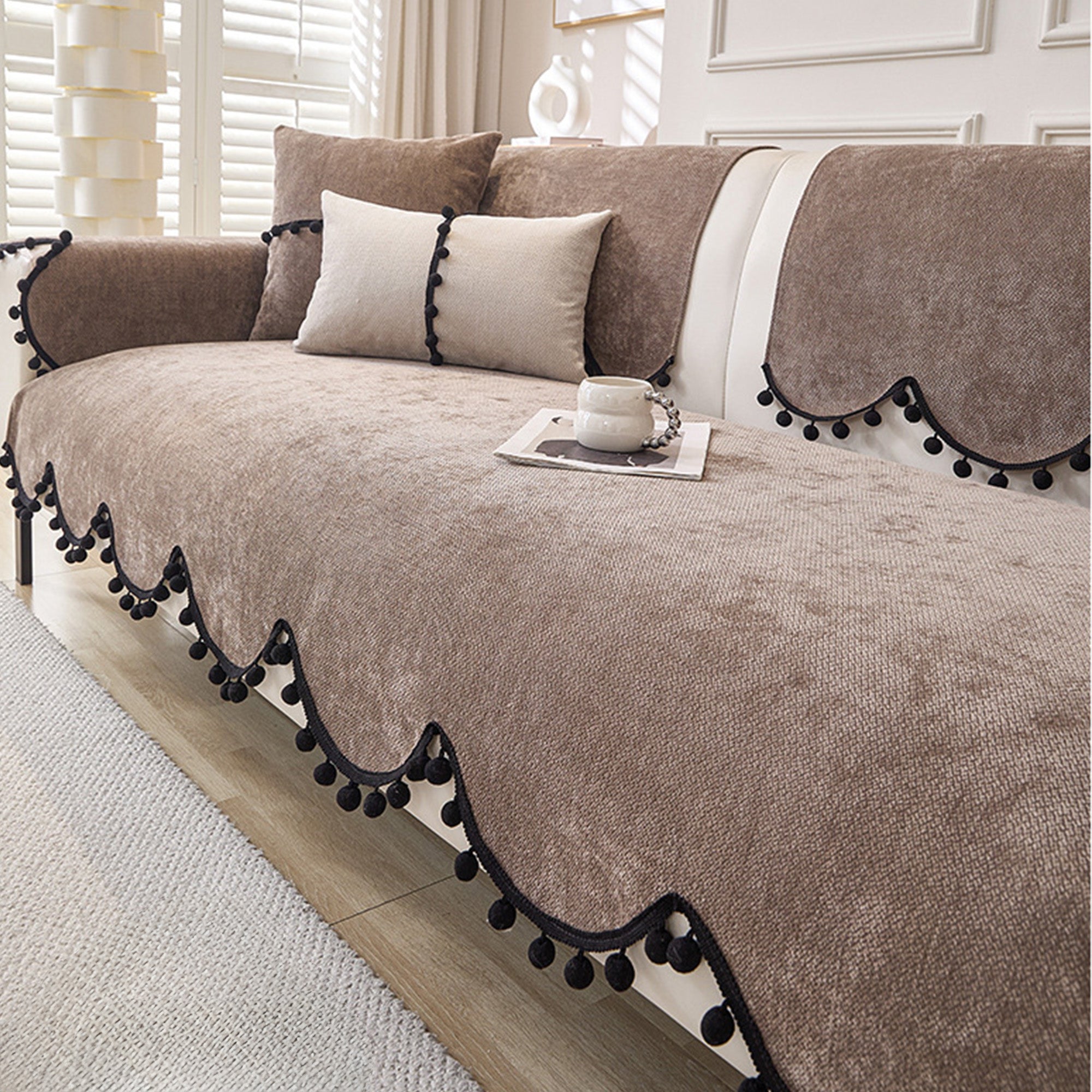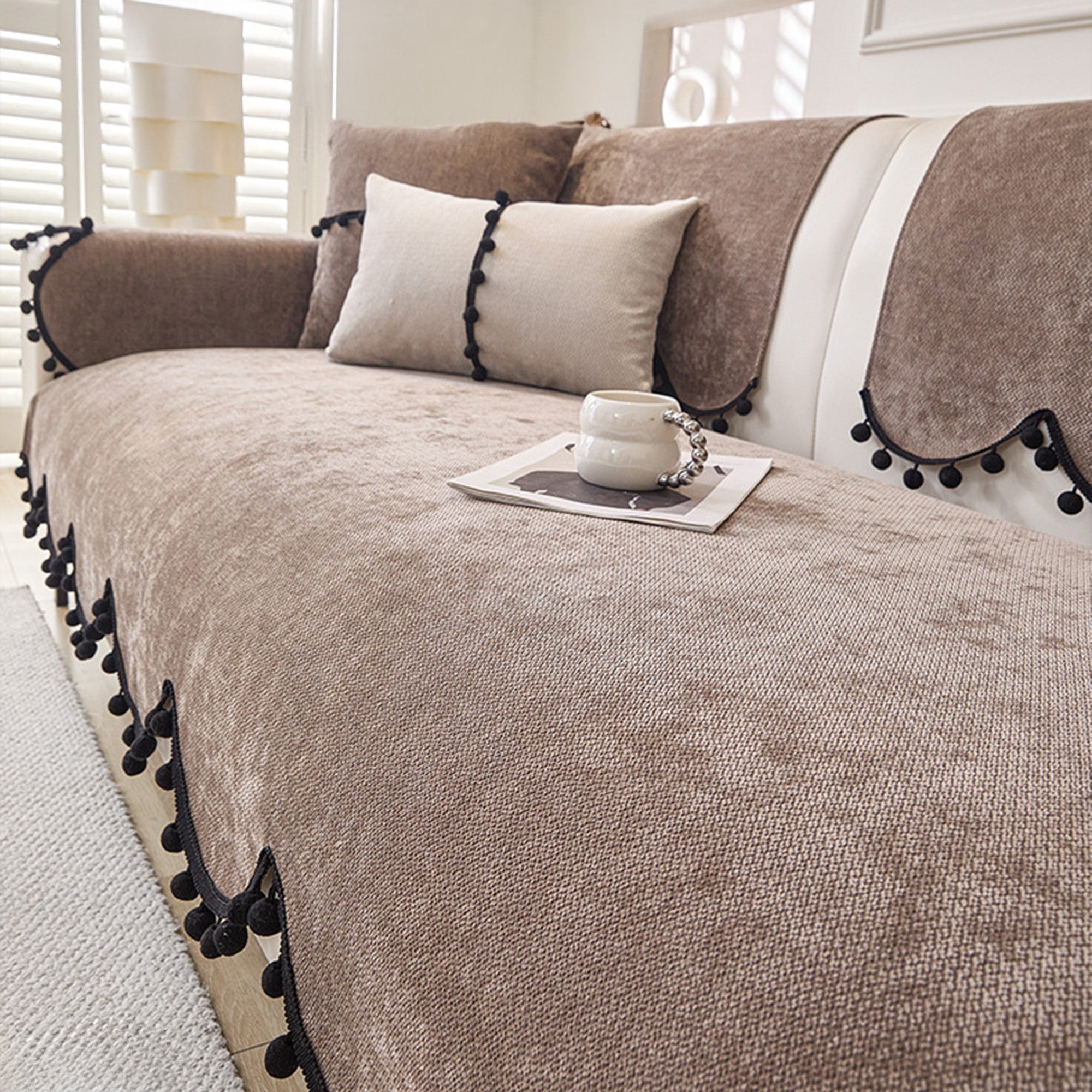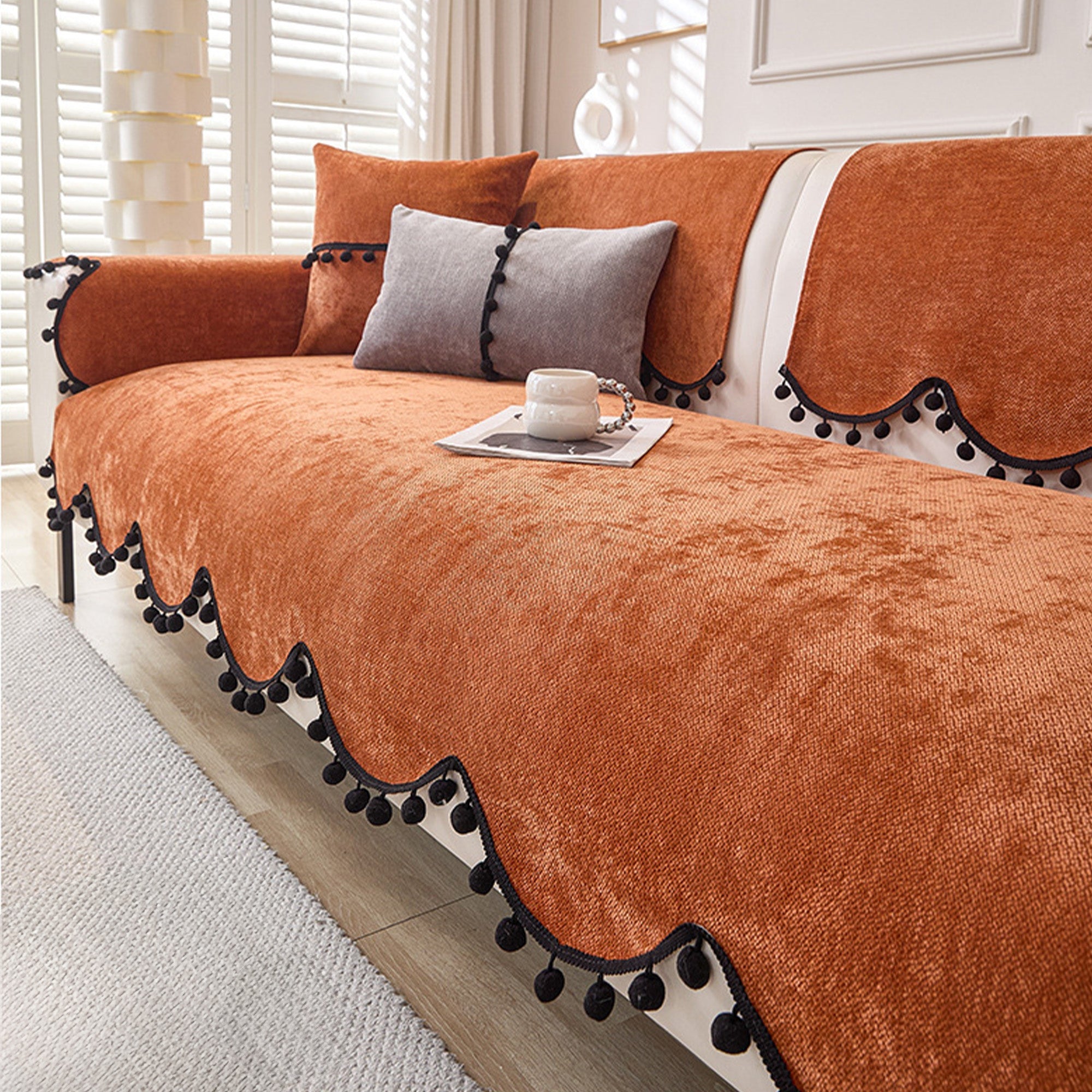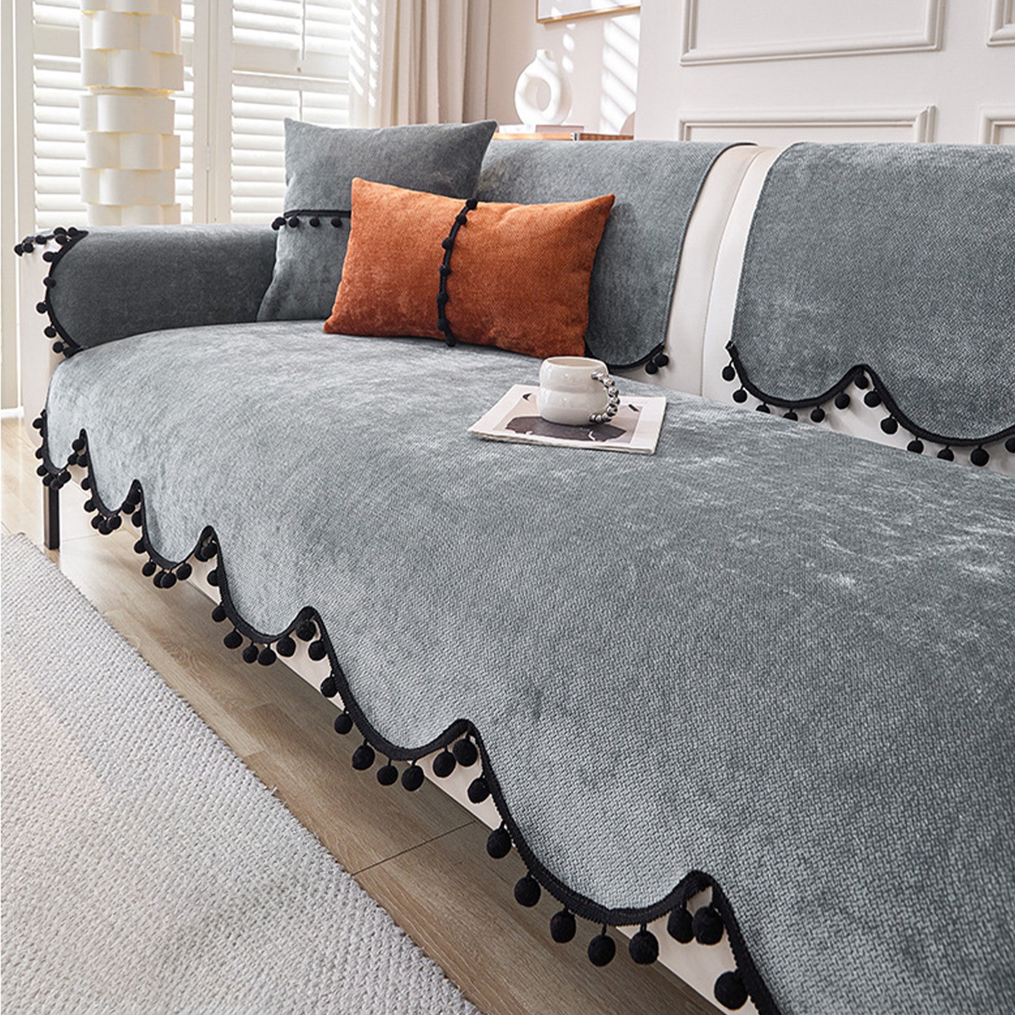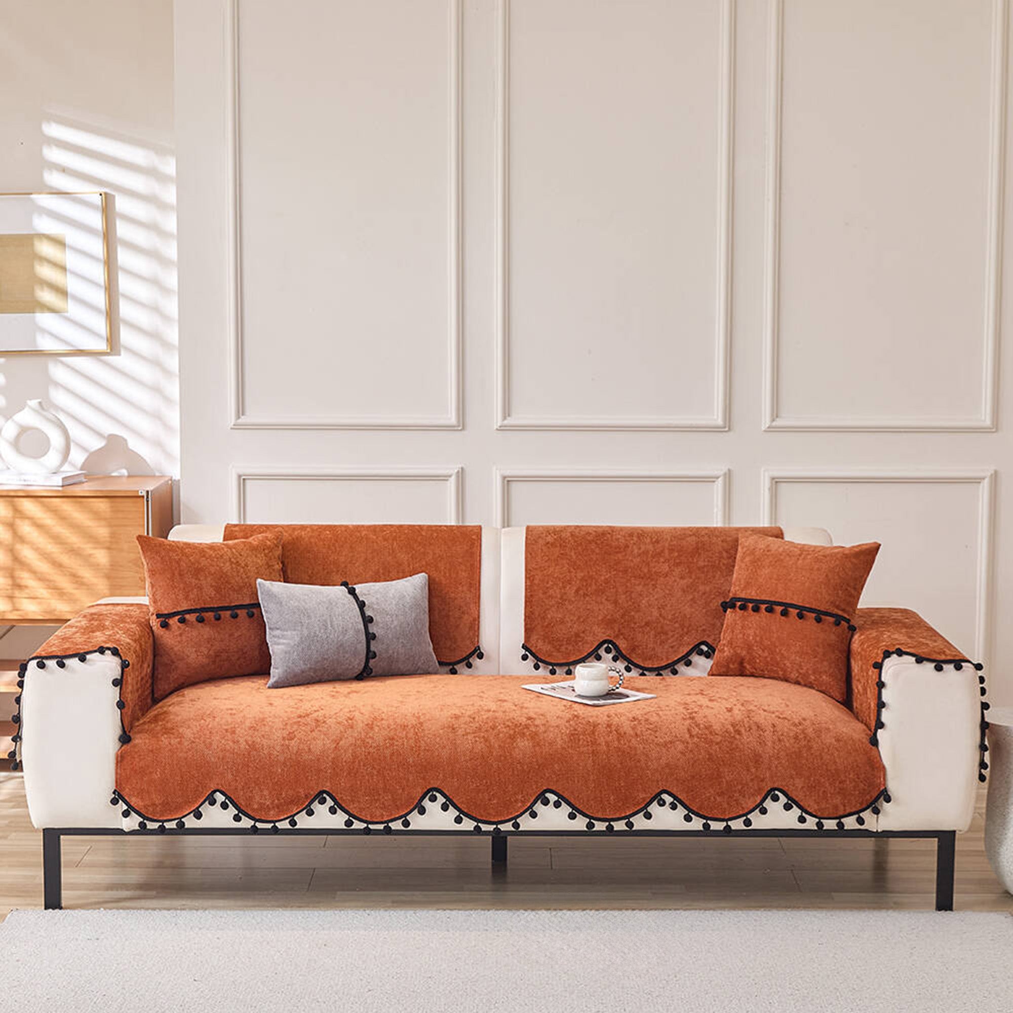 シックなスカラップ模様の裾と黒のポンポントリムが特徴の、トレンド感あふれるシェニール素材のカバーで、ソファをワンランクアップさせましょう。密度が高く毛足の短いシェニール素材は、贅沢な手触りでありながら耐久性にも優れ、滑り止め加工の裏地がすべてのパネルをしっかりと固定します。一年中お使いいただけるよう設計されており、ペットの引っかき傷、毛、こぼれ、そして日常の摩耗からソファを守ります。わずか数分で、清潔で快適なソファへのアップグレードを実現します。