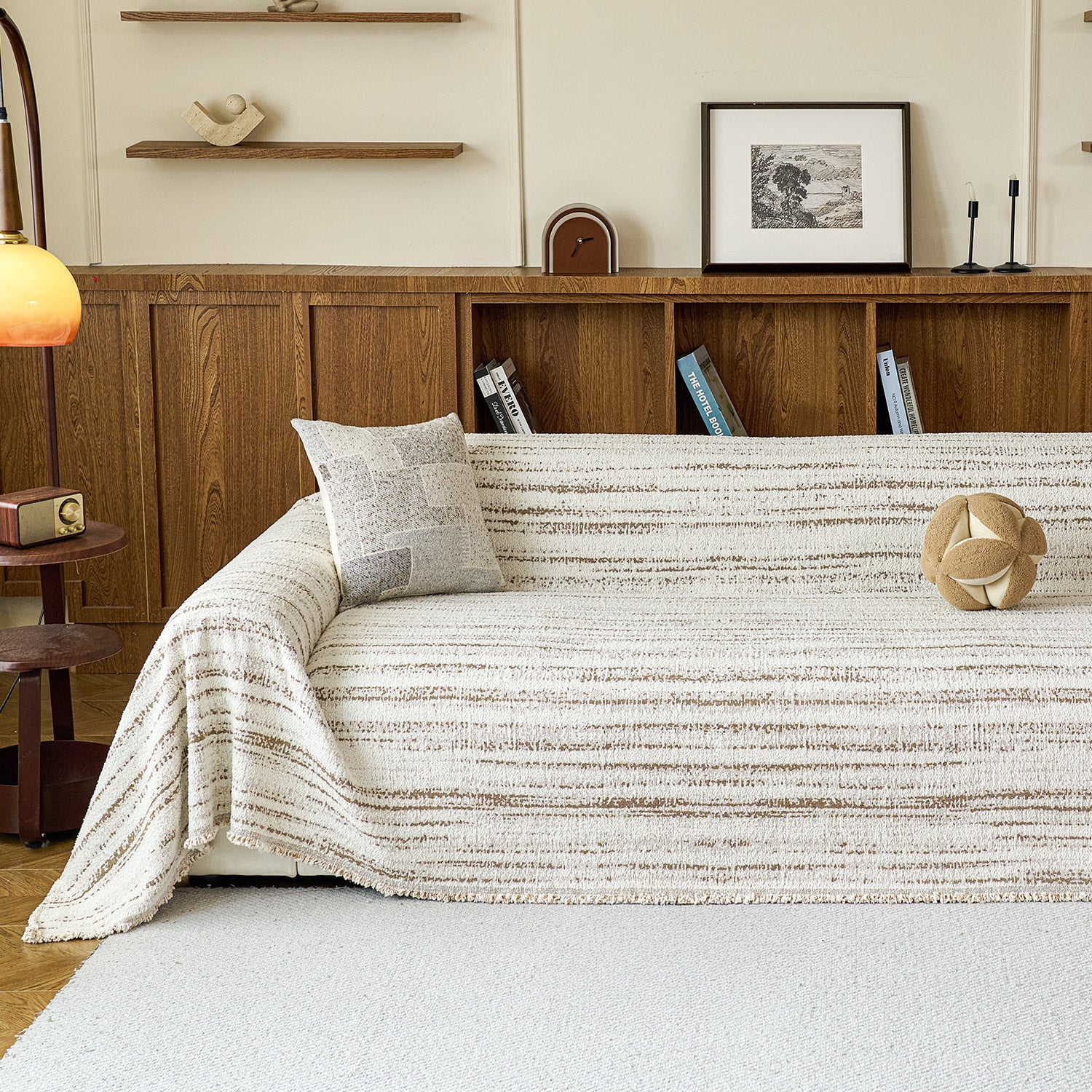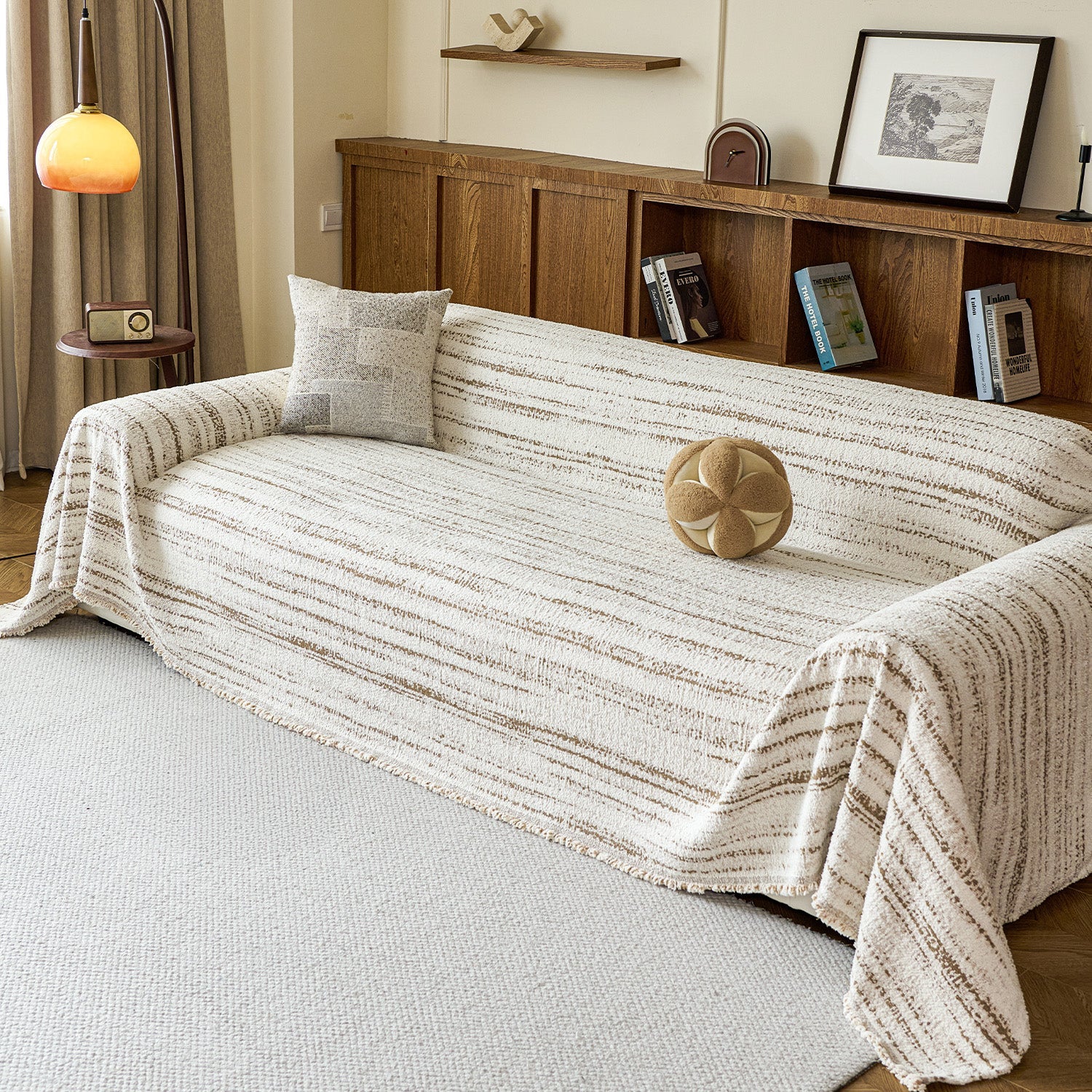 涼しい秋冬シーズンのために特別にデザインされた、ソフトウィーブ プラッシュ 傷防止ソファカバーで、リビングスペースに心地よい温かさとさりげないエレガンスを添えましょう。柔らかくふわふわとした糸の質感とナチュラルなストライプのディテールが特徴のこのカバーは、快適さと洗練されたシンプルさを融合させ、美しくリラックスした家庭的な雰囲気を演出します。高品質のプラッシュ糸生地で仕立てられたこのカバーは、抜群の柔らかさでありながら、毎日の使用に耐える確かな保護力を提供します。傷に強く、ペットにも優しく、汚れにも強く、丸洗い可能な素材なので、お子様やペットのいるご家庭に最適です。通気性と温かみのある質感が、リビングルームやラウンジエリアに優しく居心地の良い雰囲気を添えます。