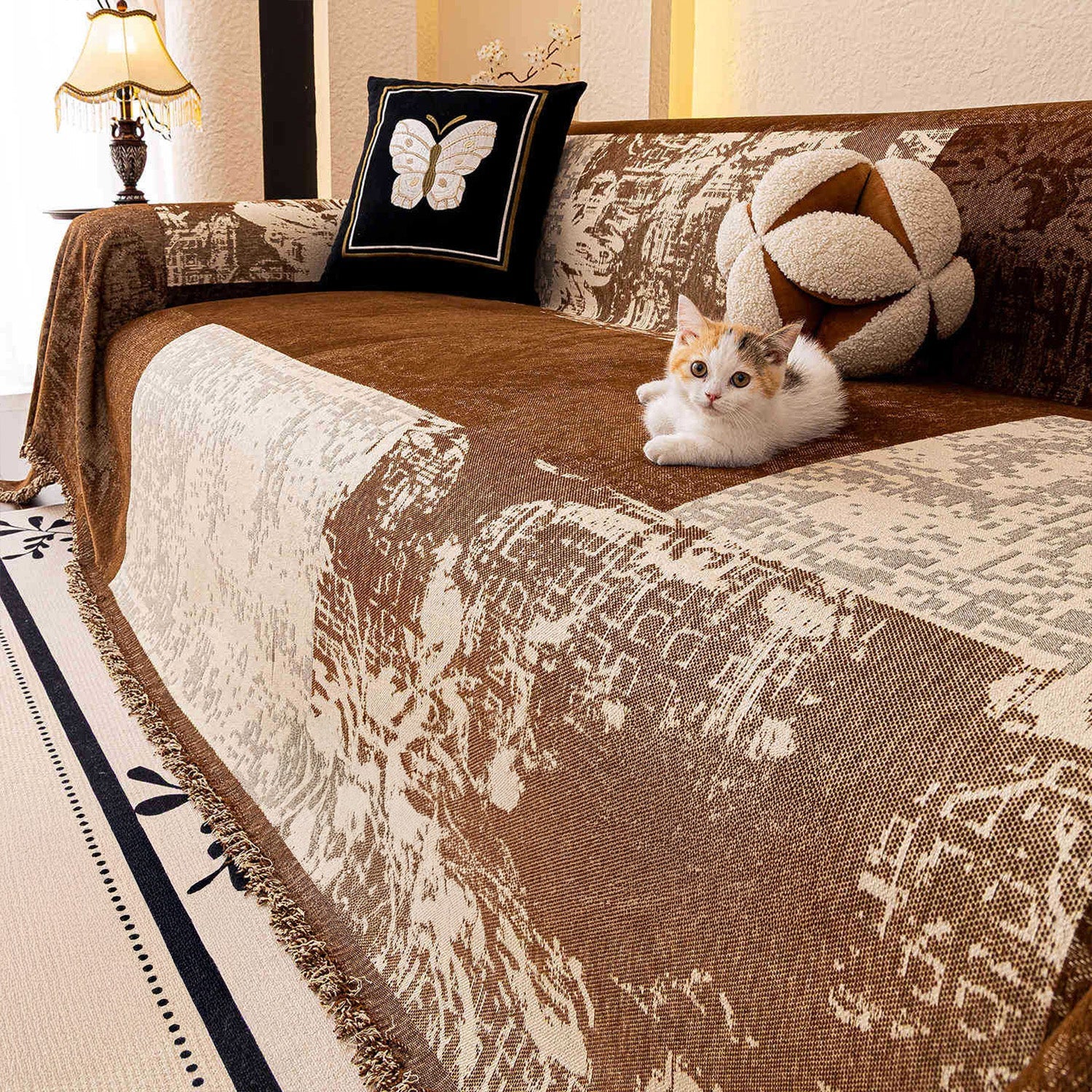 ヴィンテージブルームシェニール傷防止ソファカバー