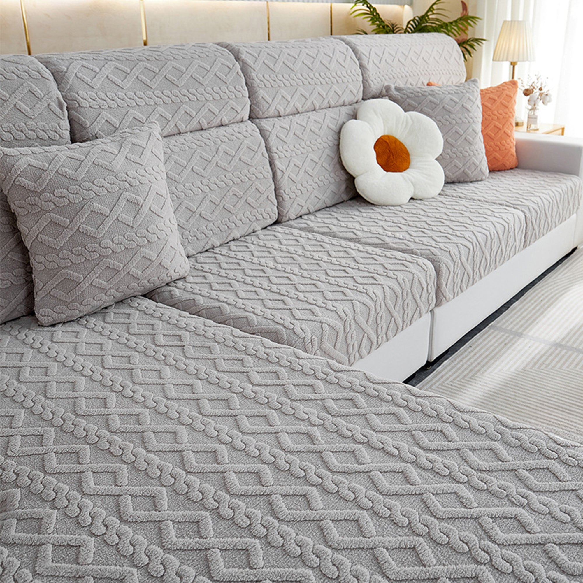 心地よい織りミルクベルベットストレッチソファカバー - フルラップ、滑り止め保護