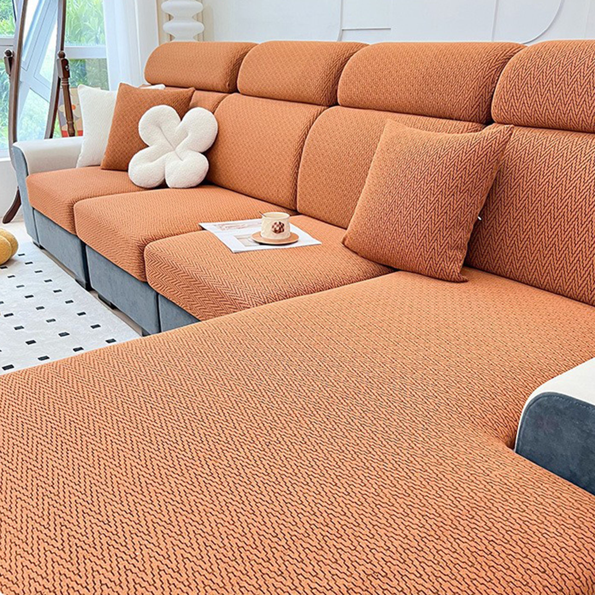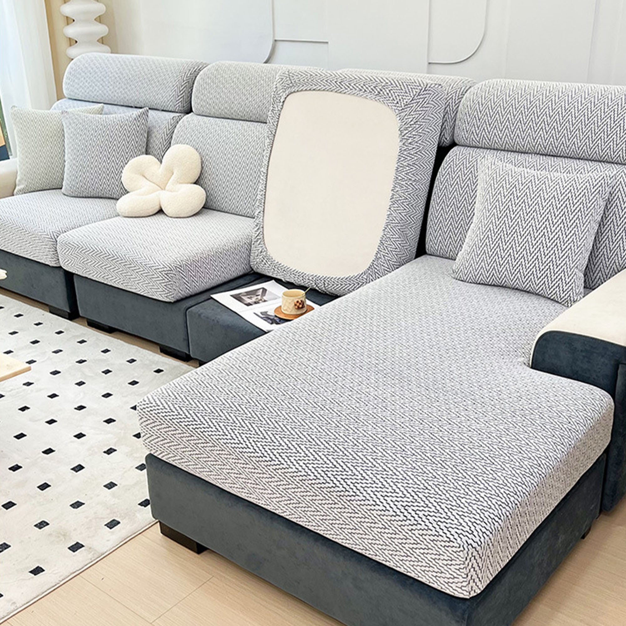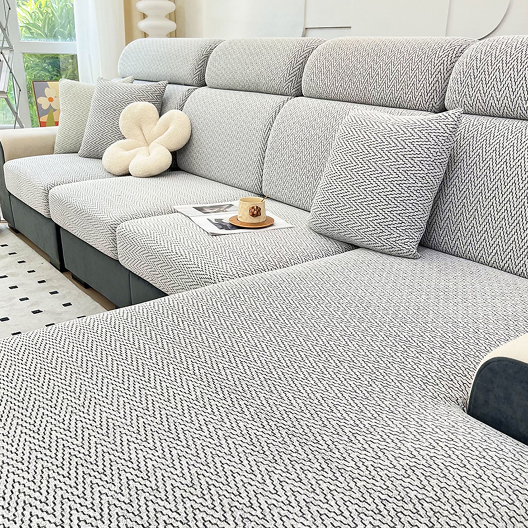 エレガントなシェブロンジャカードオールシーズンストレッチソファカバー - フルラップ、滑り止め、傷防止